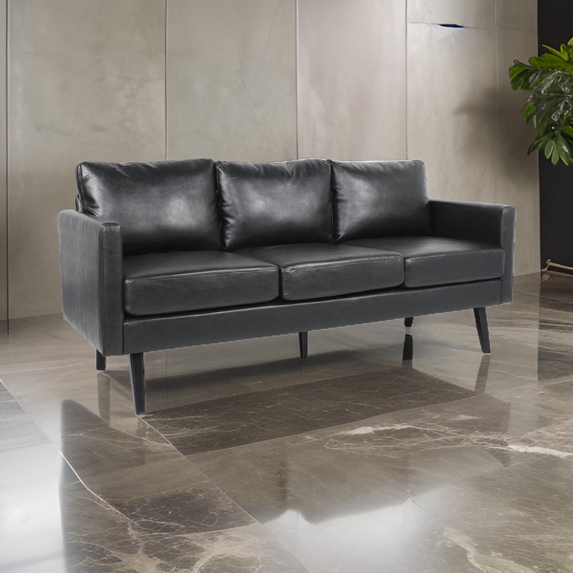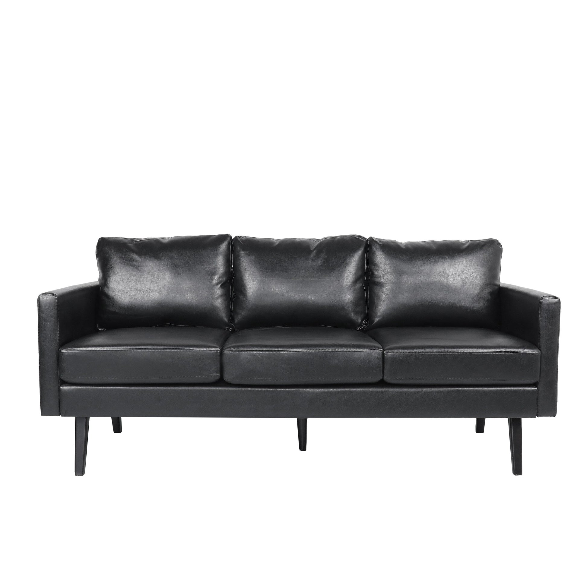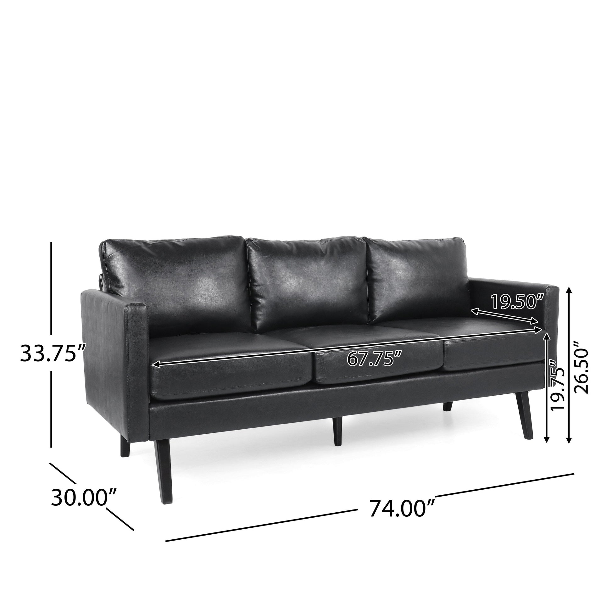Divano da 74 pollici, rivestimento in similpelle nera,...