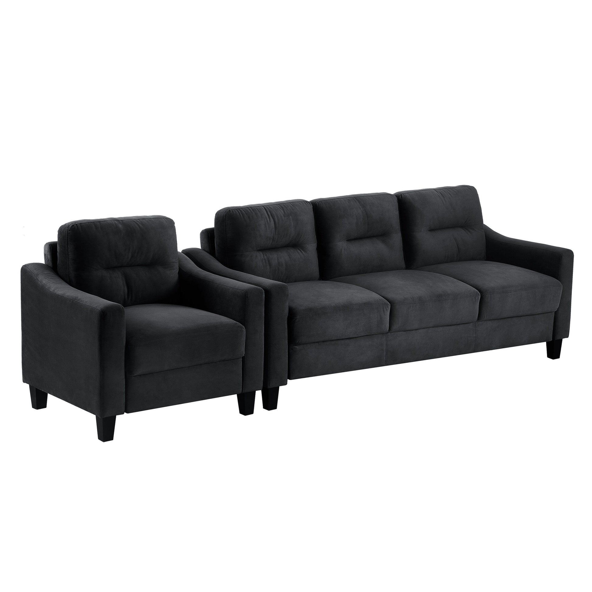 • Godetevi il comfort avvolgente offerto dai cuscini di seduta e dallo schienale generosamente imbottiti, che offrono un'esperienza tattile che trascende l'ordinario. Immergetevi in ​​un mondo di relax, mentre il morbido tessuto vi avvolge in un'opulenta intimità.
