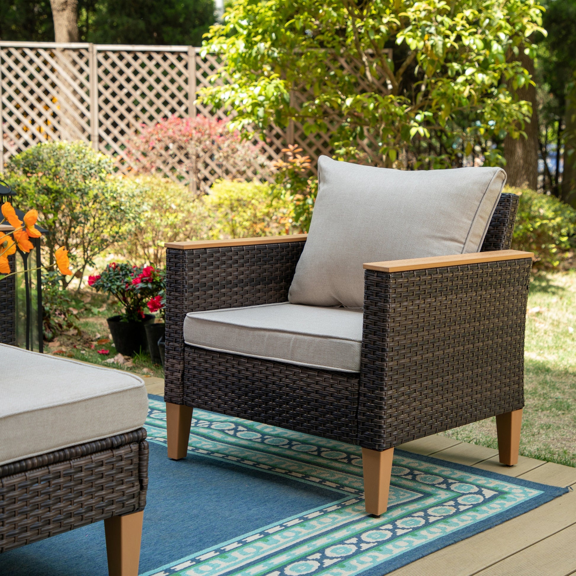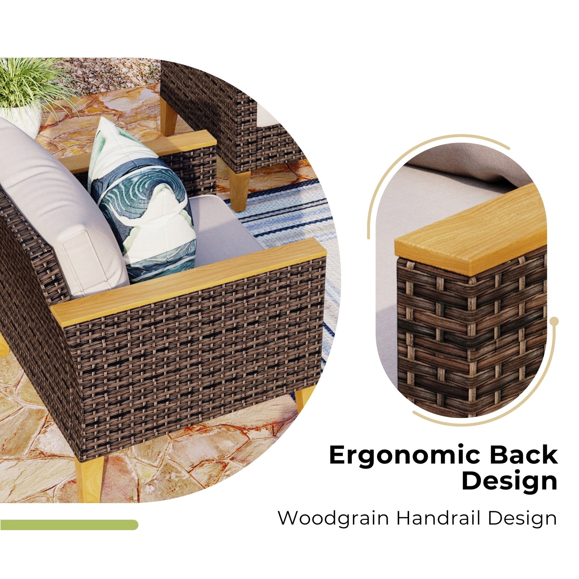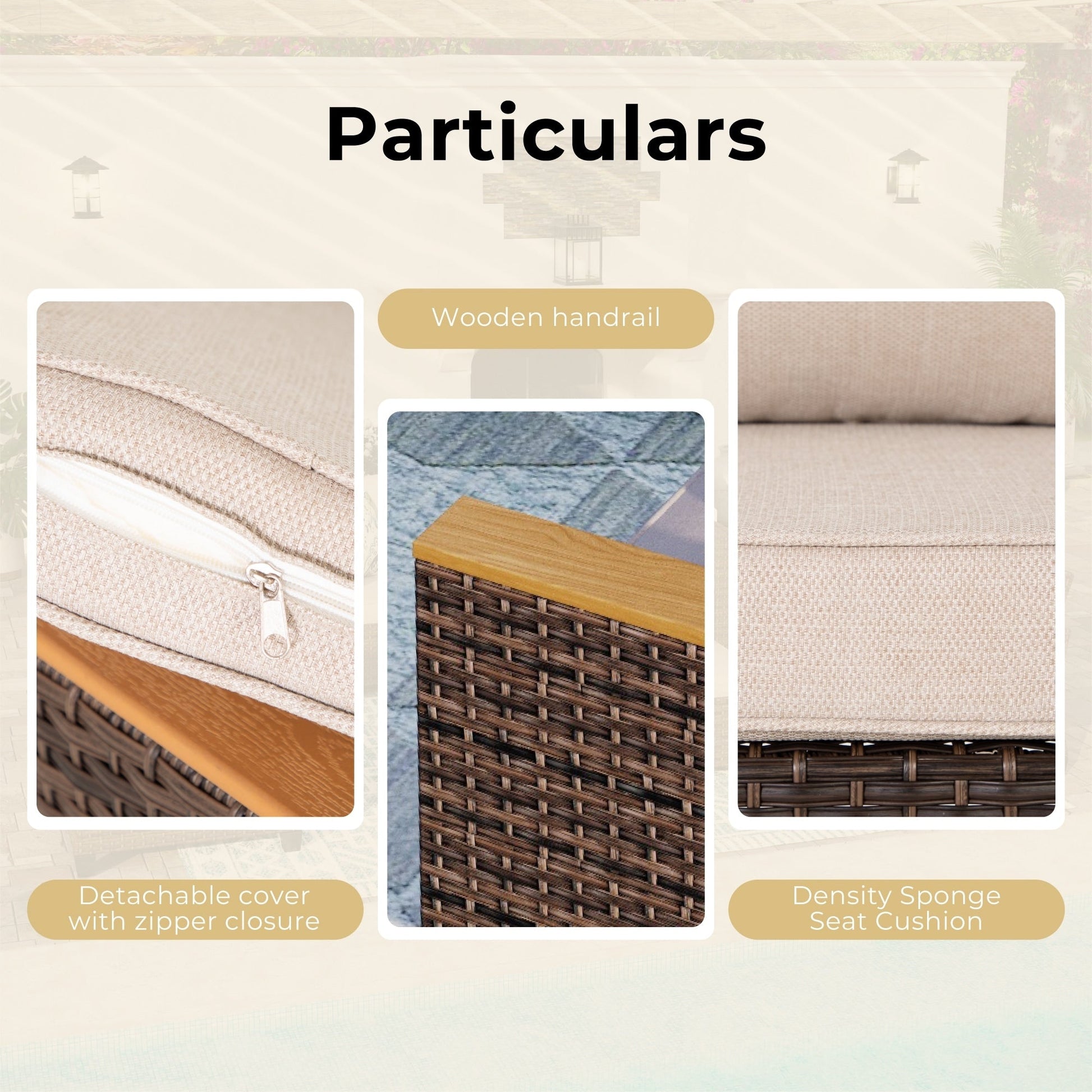 Rattan resistente e struttura robusta : questo set di mobili da esterno in vimini è realizzato in rattan PE intrecciato a mano di alta qualità. Ulteriori nervature rinforzate su entrambi i bordi del rattan lo rendono più resistente e adatto a diverse condizioni atmosferiche. Realizzato con una robusta struttura in metallo, può migliorare efficacemente la capacità di carico. Nota: cuscini e altre decorazioni non sono inclusi. Si prega di controllare la descrizione per maggiori dettagli.