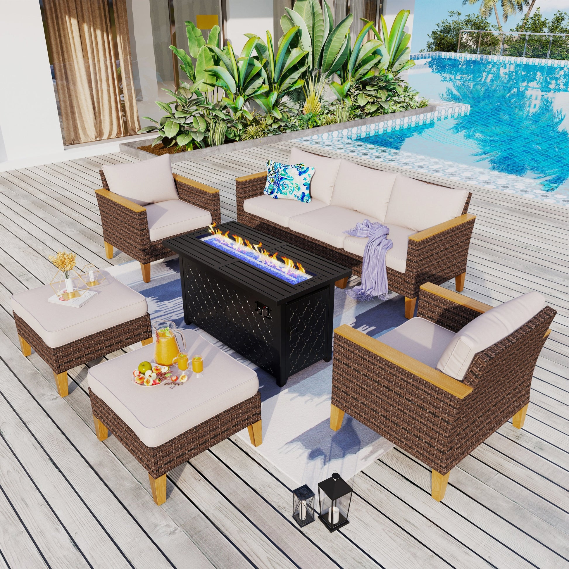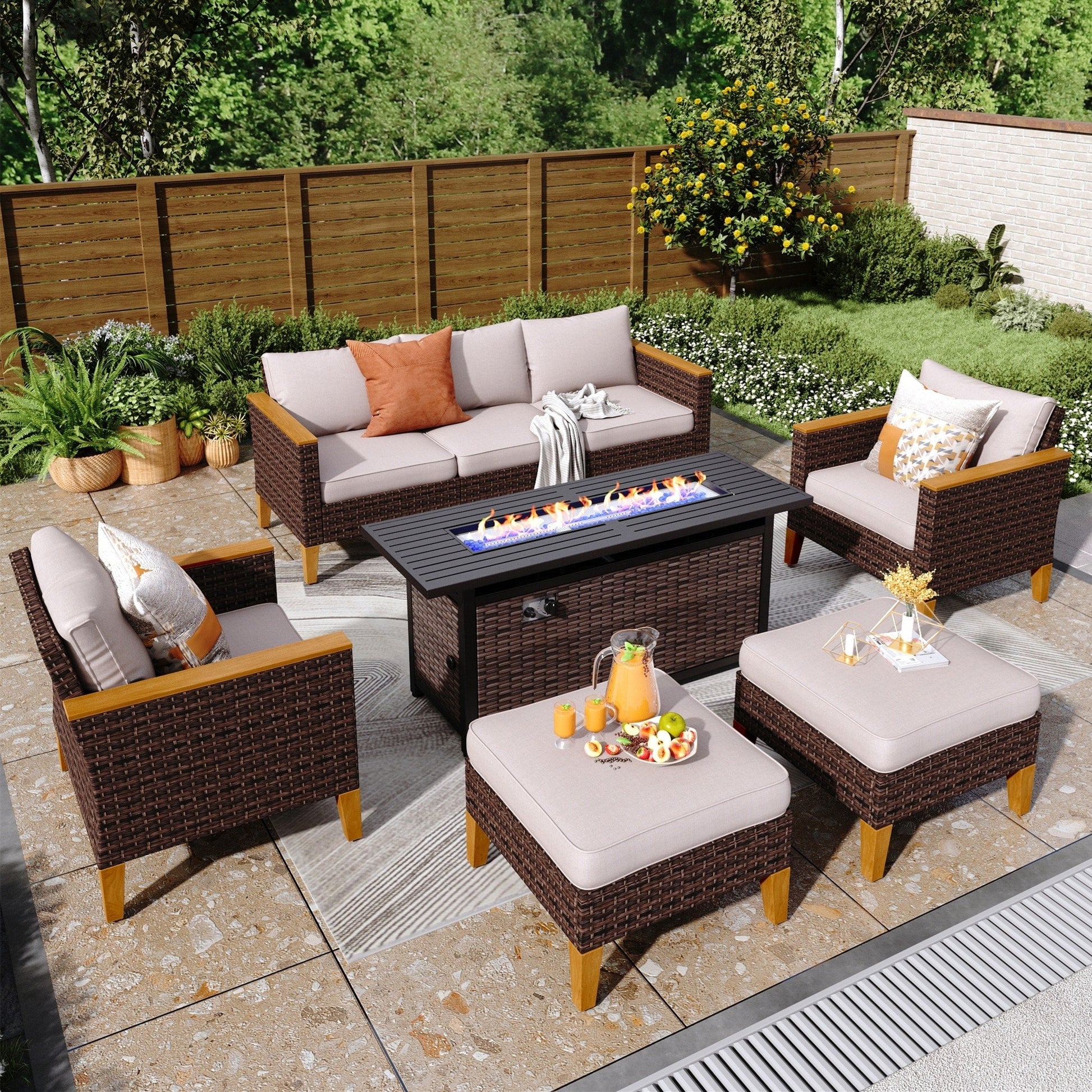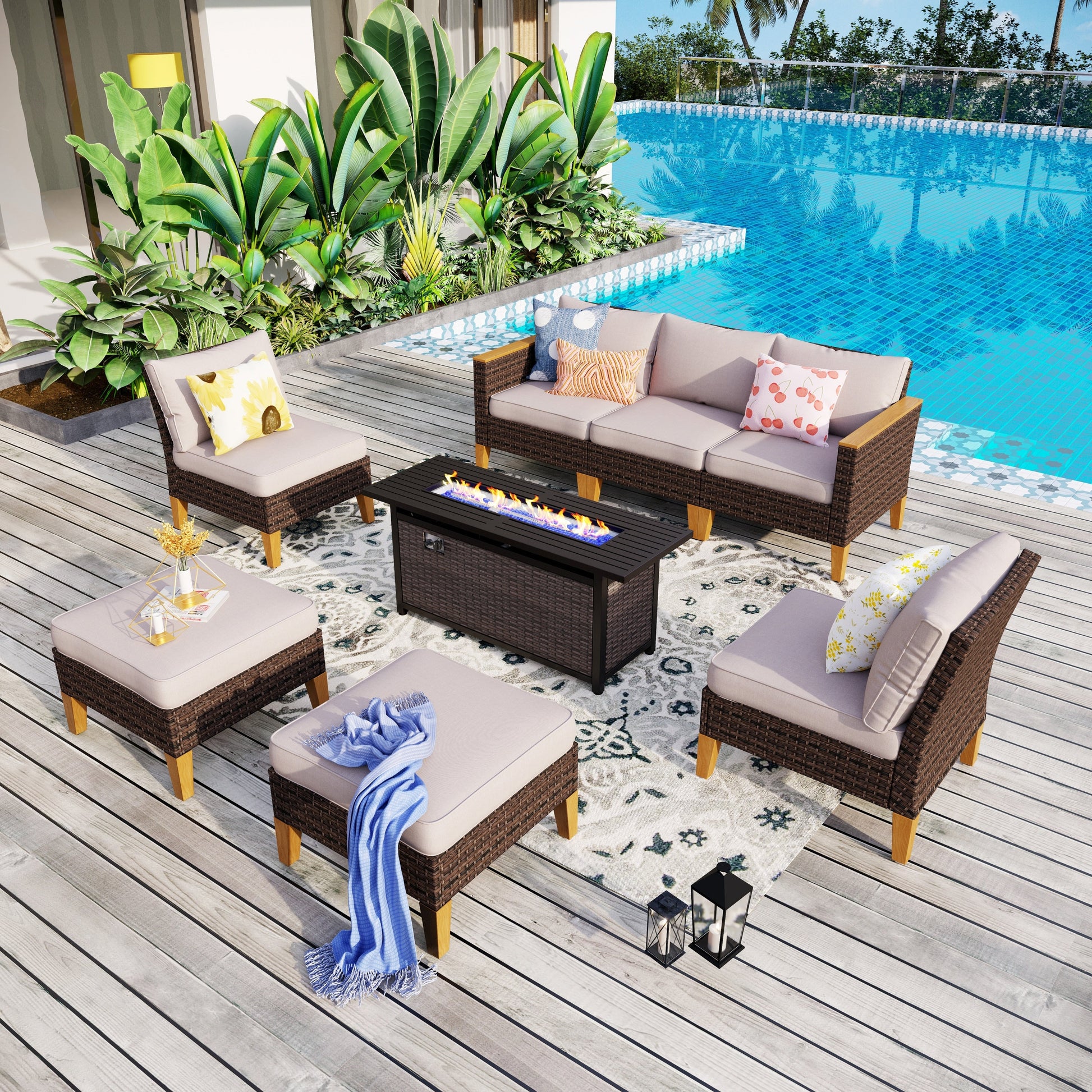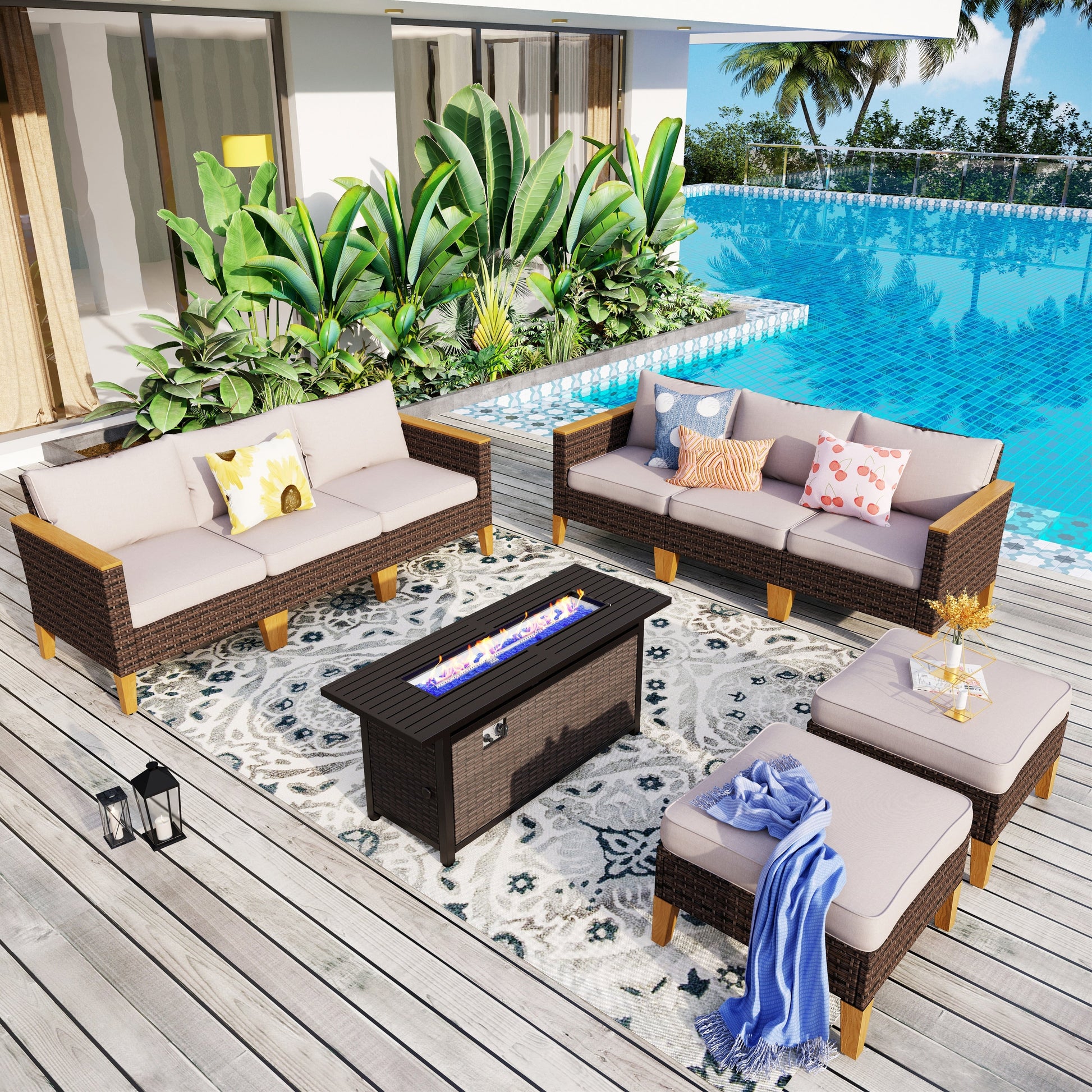 Set di divani componibili per patio liberamente combinabili : questo set di mobili da giardino include un divano a 3 posti, un divano a 2 posti, un divano singolo con braccioli, un divano senza braccioli, un pouf e un tavolo con braciere a gas propano da 45 piedi, consentendoti di creare la configurazione perfetta per adattarla al tuo spazio esterno. Si adatta perfettamente al tuo giardino, cortile, balcone o bordo piscina per creare una confortevole zona relax o per avvicinarti alla splendida natura con la famiglia e gli amici.