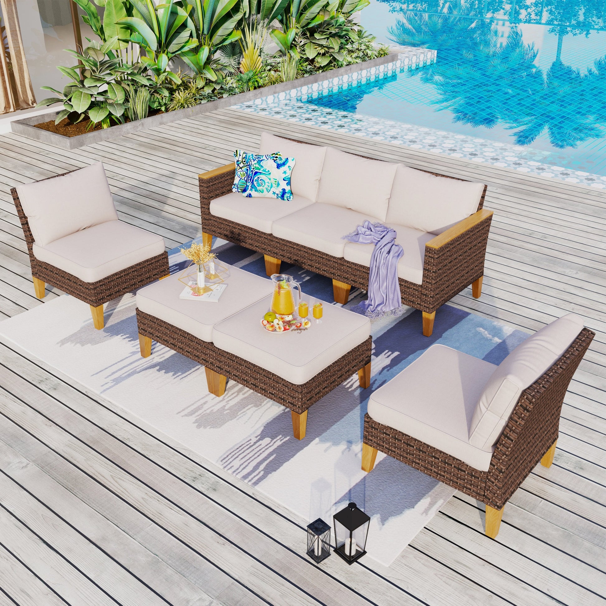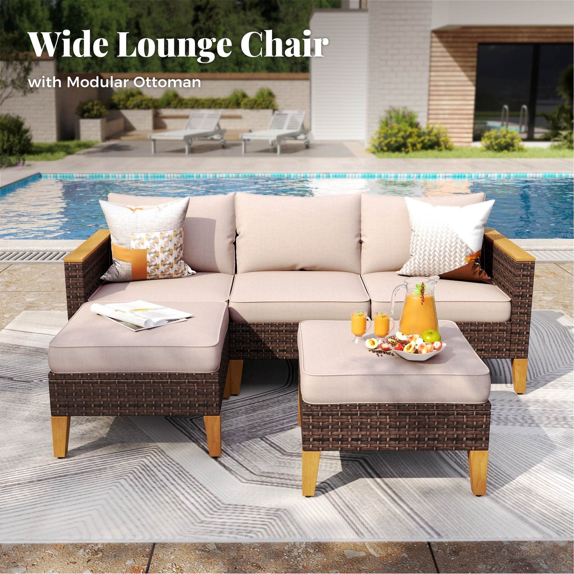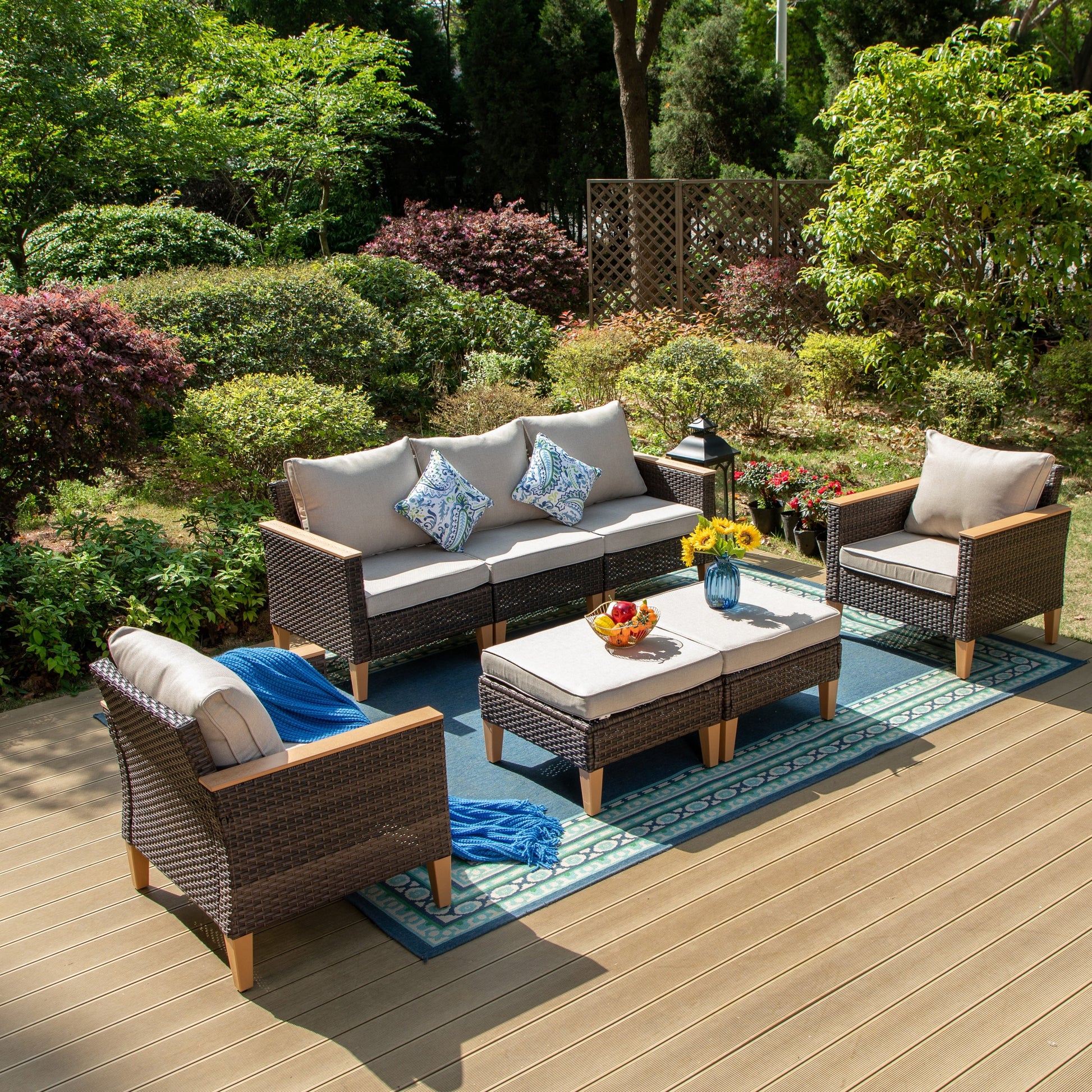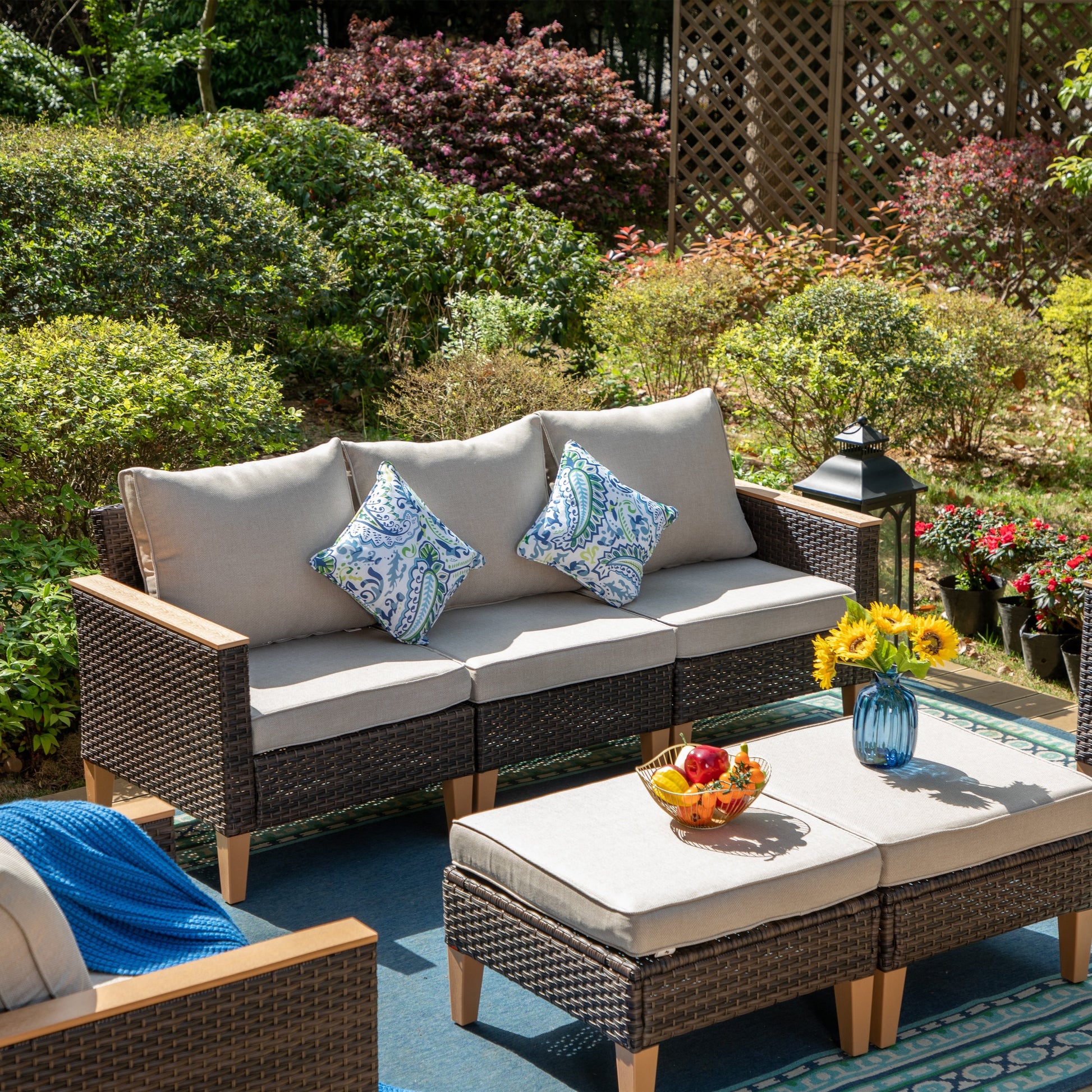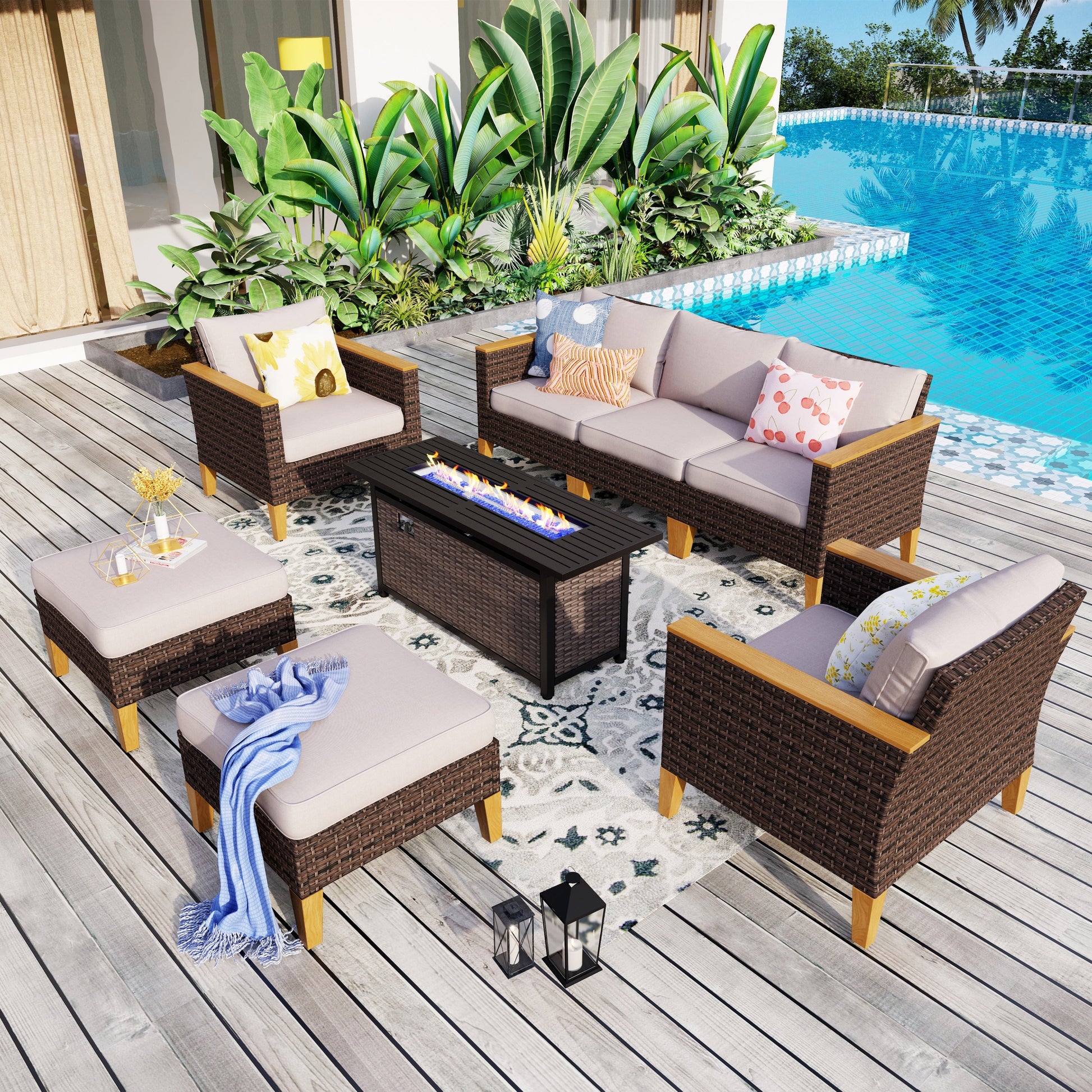 Set di divani componibili per patio liberamente combinabili : questo set di mobili da giardino include un divano a 3 posti, un divano a 2 posti, un divano singolo con braccioli, un divano senza braccioli, un pouf e un tavolo con braciere a gas propano da 45 piedi, consentendoti di creare la configurazione perfetta per adattarla al tuo spazio esterno. Si adatta perfettamente al tuo giardino, cortile, balcone o bordo piscina per creare una confortevole zona relax o per avvicinarti alla splendida natura con la famiglia e gli amici.