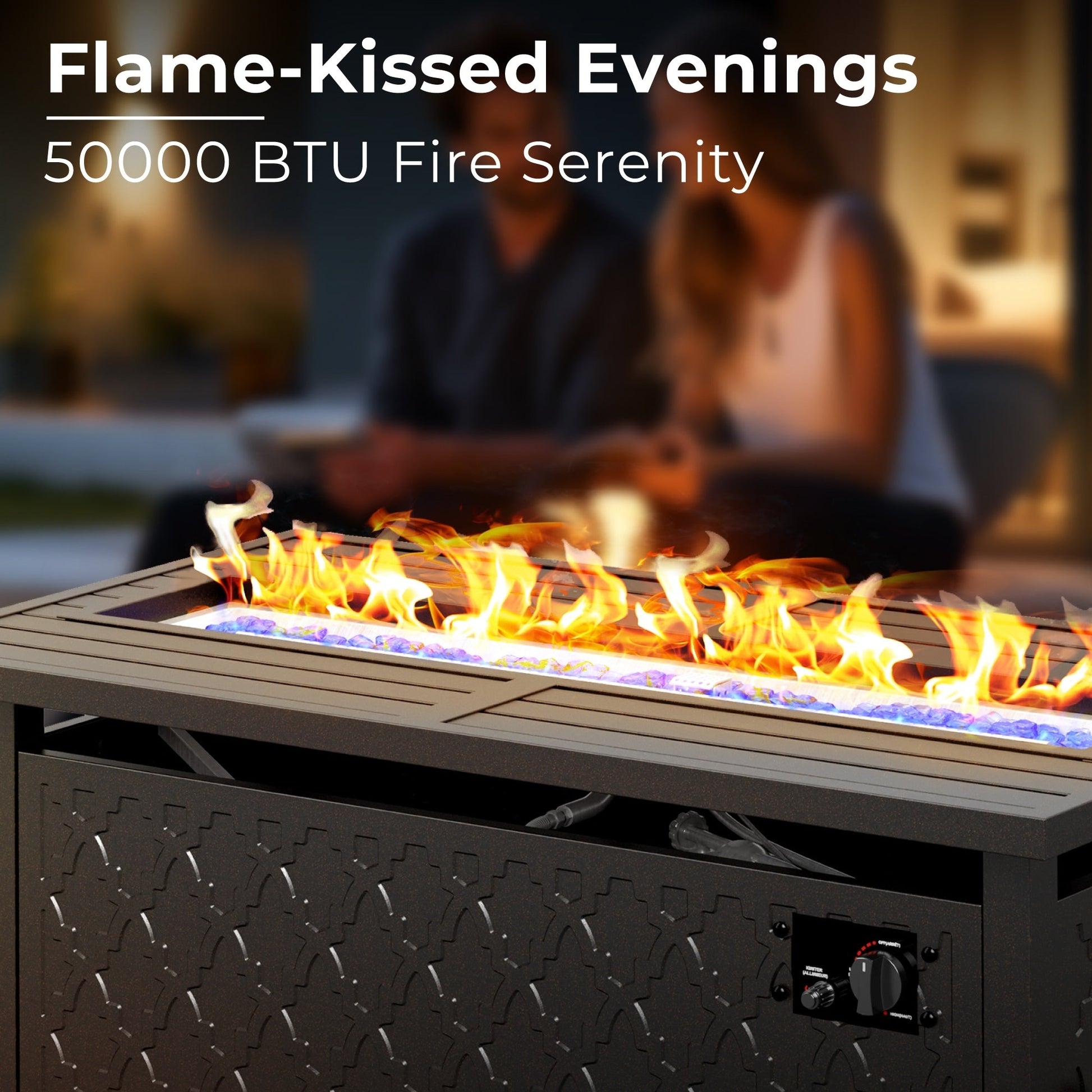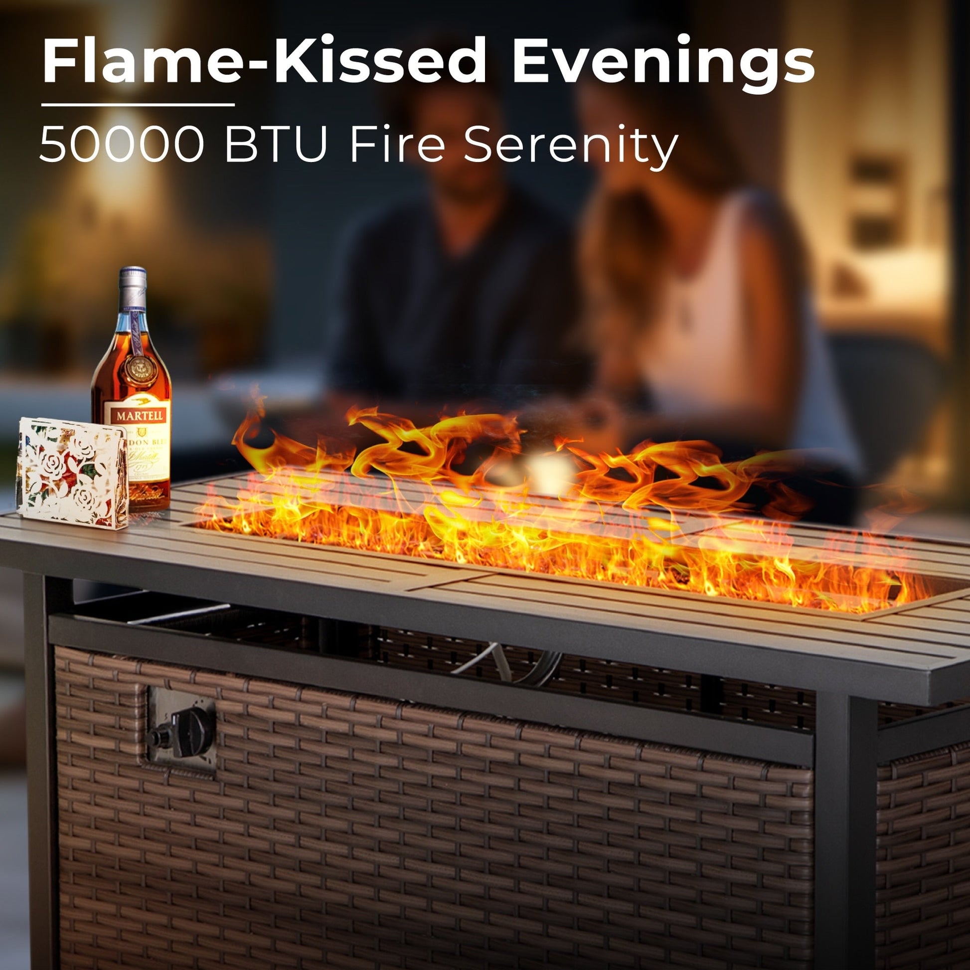 Esperienza di falò sicura e calda : il set da conversazione per patio all'aperto utilizza un tavolo da fuoco rettangolare da 45 piedi, certificato CSA e con una potenza termica di 50.000 BTU, per creare un'atmosfera sicura, calda e romantica. È perfetto per godersi il tempo libero all'aria aperta con la famiglia. Il tavolo da fuoco può anche essere convertito in un tavolo da pranzo all'aperto coprendo il coperchio quando non viene utilizzato.
