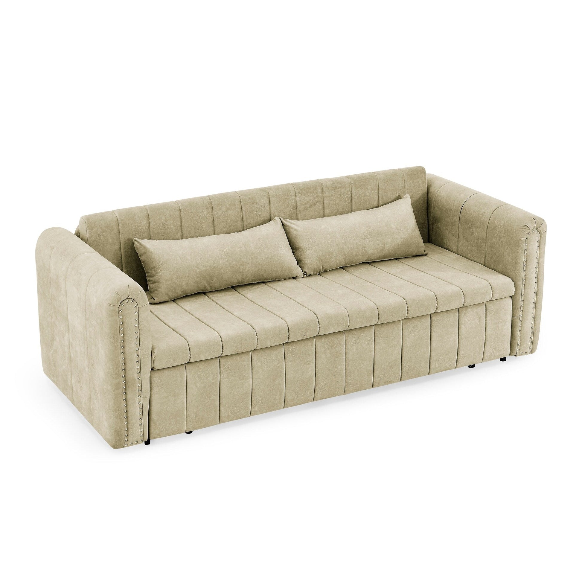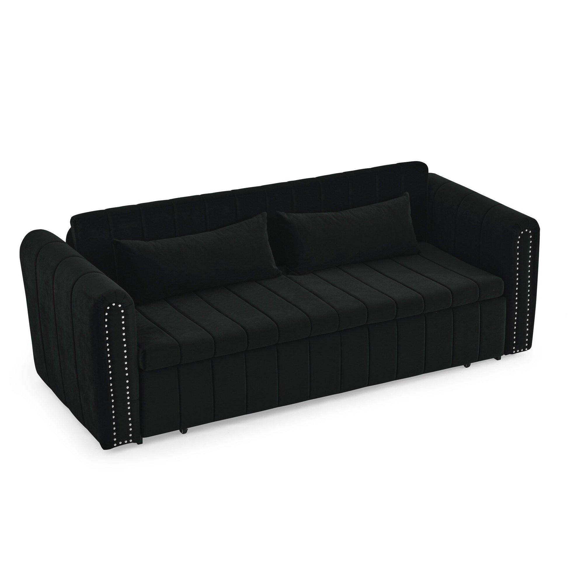 Divano a 3 posti in velluto da 82,3'' con braccioli arrotolati, letto matrimoniale estraibile, due cassetti e due cuscini