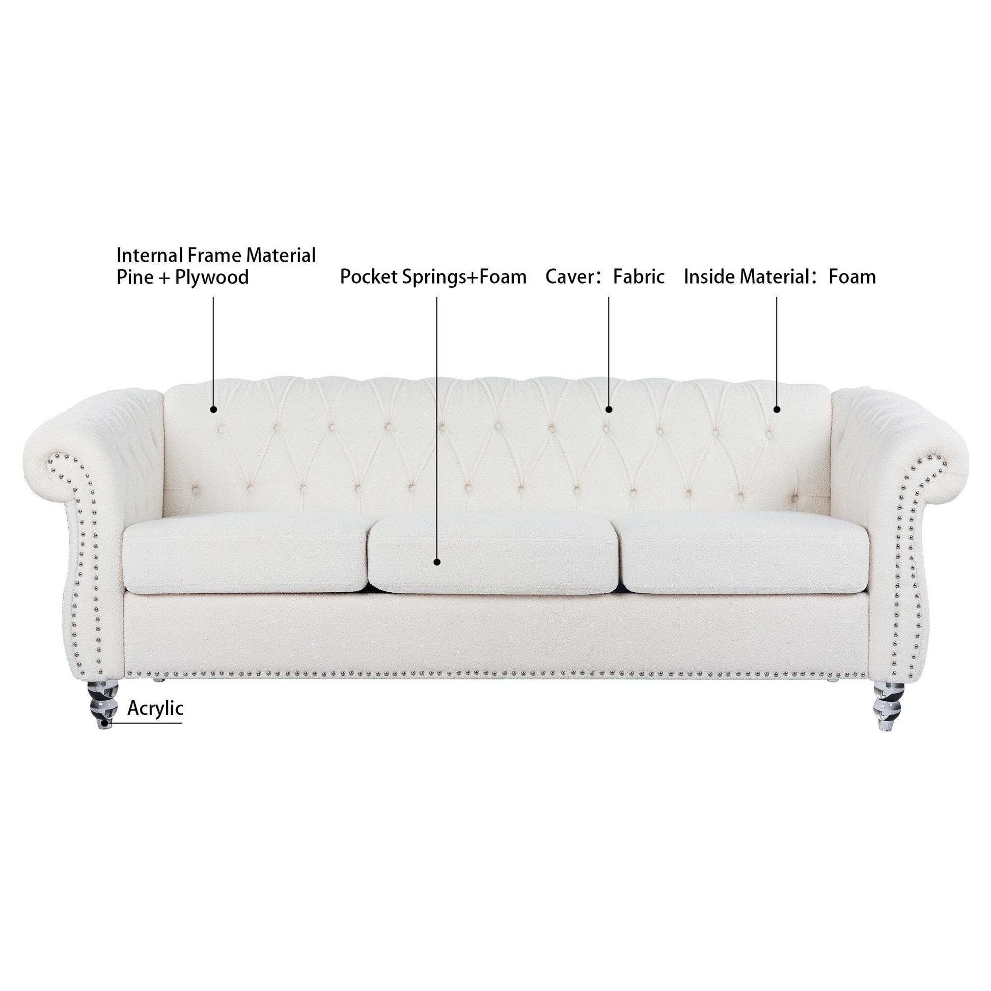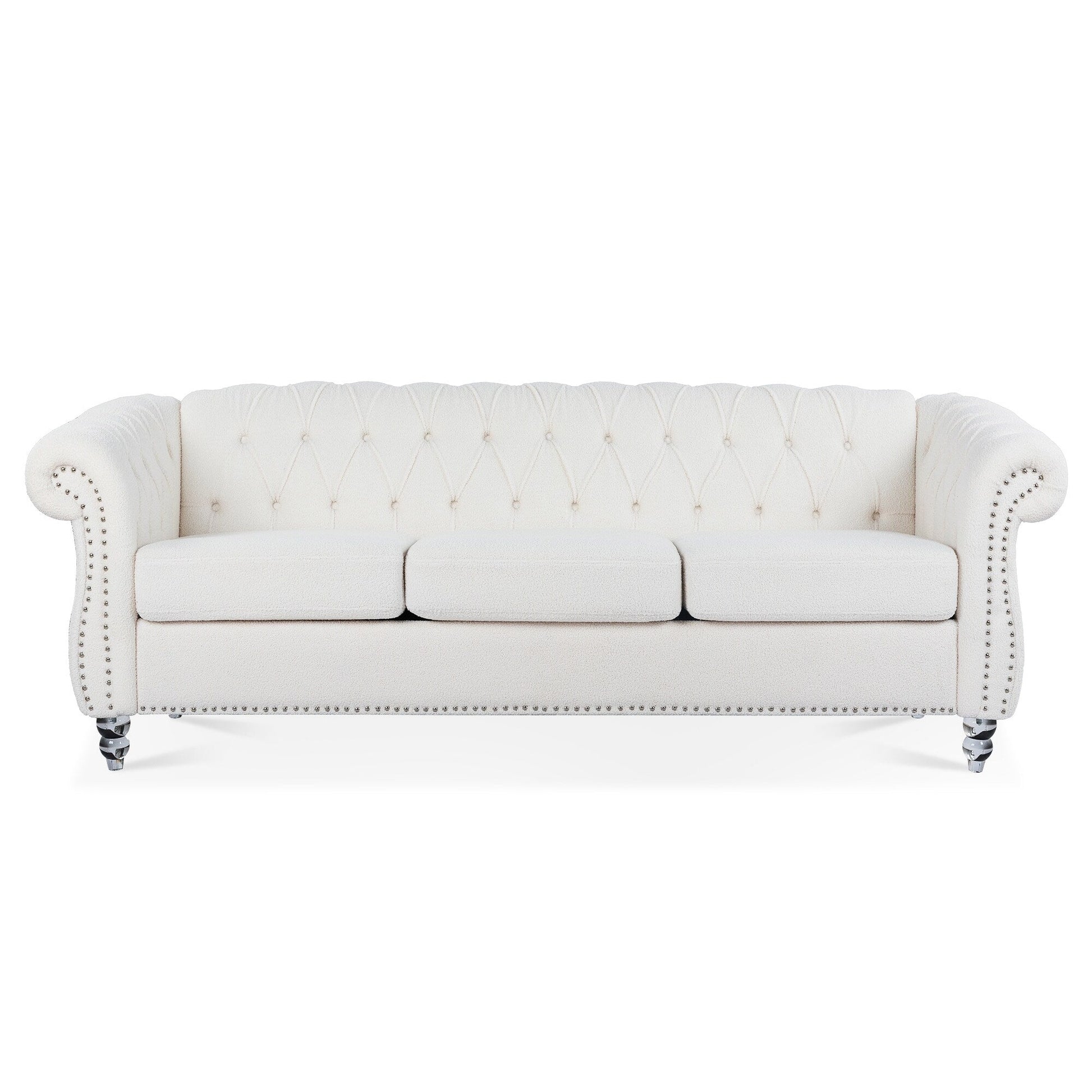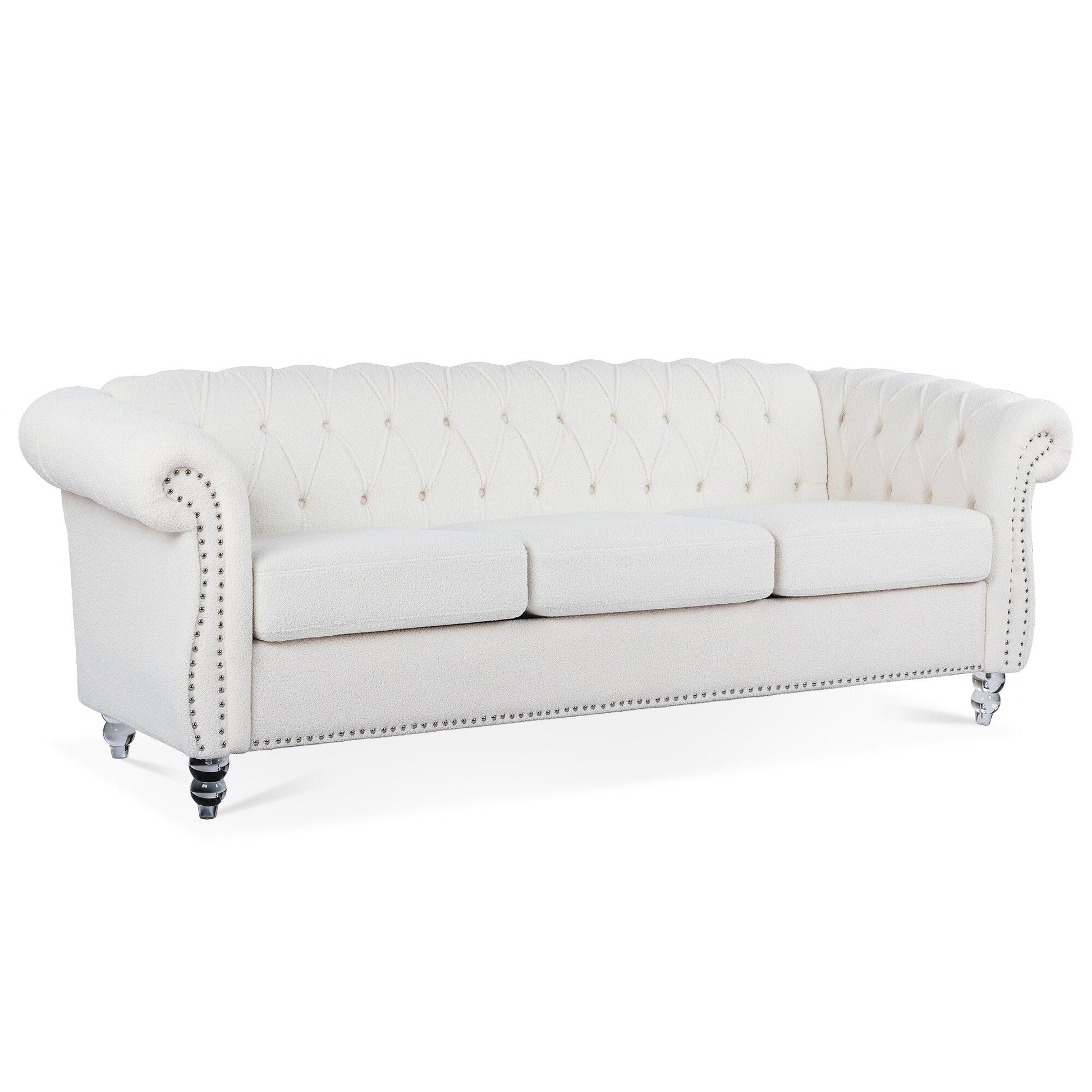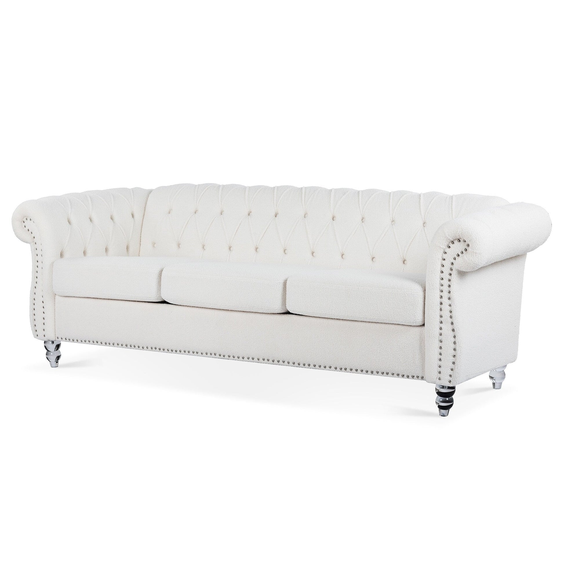 Divano Chesterfield in poliestere con braccioli arrotolati (3 posti) 84,65