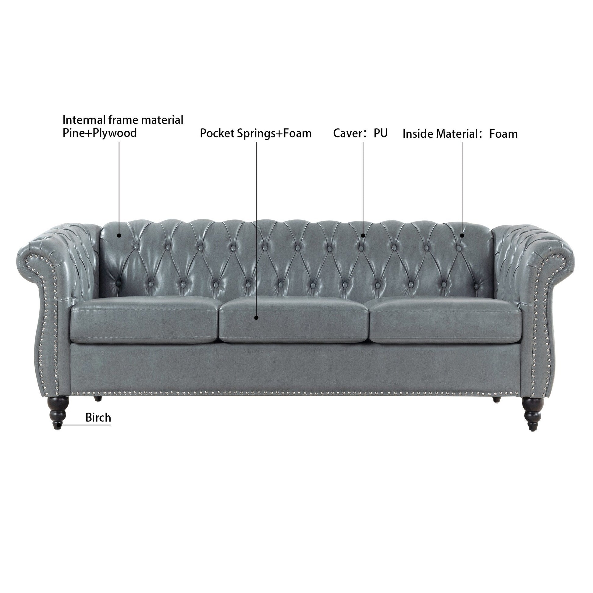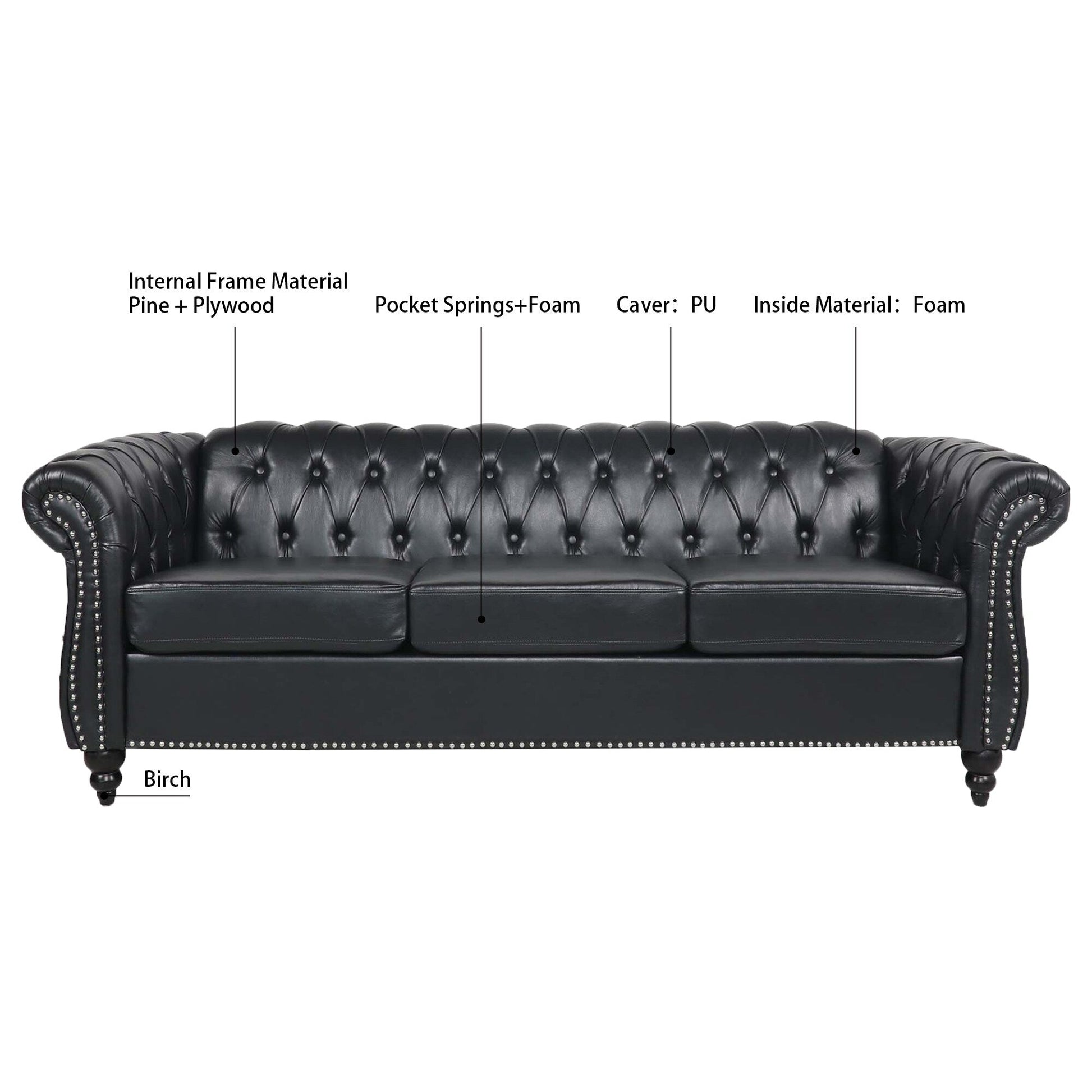 Divano Chesterfield in pelle PU da 84,65 pollici...