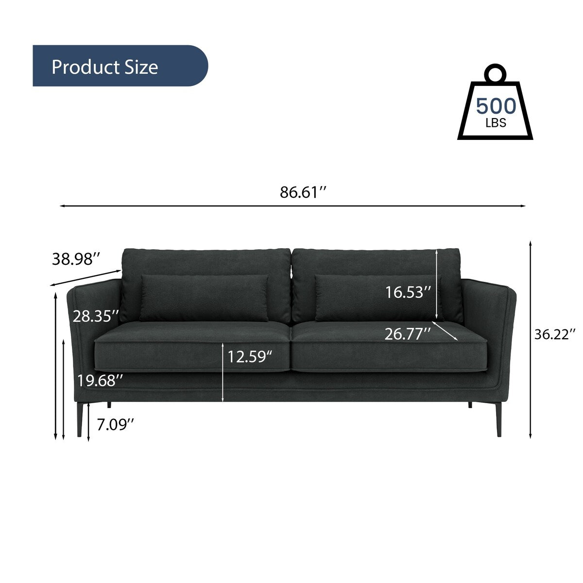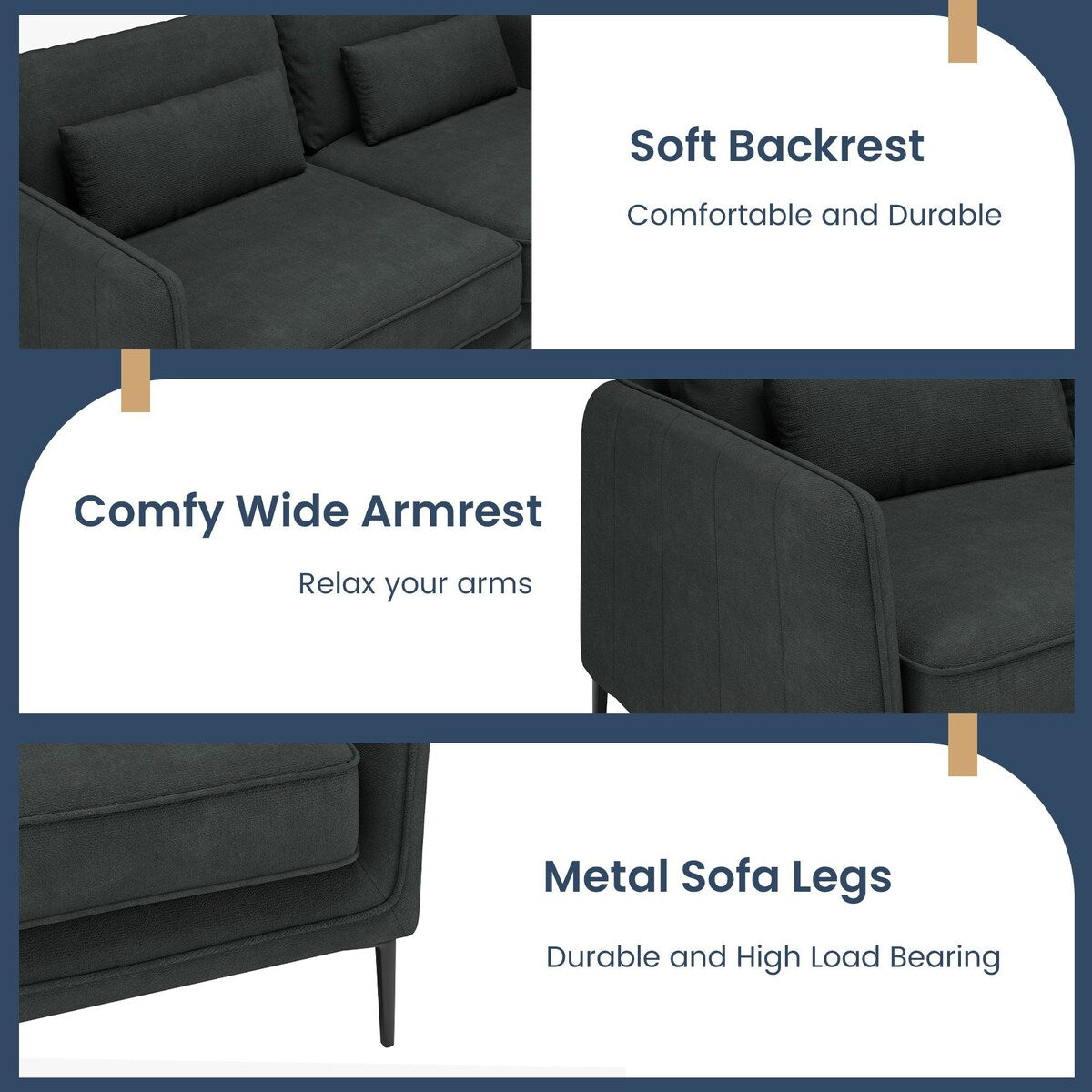 Questo divano unisce una moltitudine di caratteristiche straordinarie per offrire comfort e stile eccezionali alla tua casa. In primo luogo, la sua robusta combinazione di legno massello di pino e telai in compensato garantisce la durevolezza e la stabilità del divano, permettendoti di godere a lungo sia del comfort che dell'estetica. In secondo luogo, l'utilizzo di tessuti di alta qualità offre morbidezza, resistenza all'abrasione e alle pieghe, migliorando la qualità complessiva del divano. Il design della seduta privilegia il comfort, assicurandoti una sensazione di comfort e relax. Il design in grigio scuro crea un equilibrio tra semplicità ed eleganza, integrandosi perfettamente con diversi stili di arredamento e infondendo un tocco di modernità al tuo spazio. Che tu stia riposando, intrattenendoti o trascorrendo del tempo con amici e familiari, questo divano offrirà un comfort eccezionale e aggiungerà un tocco di raffinatezza alla tua casa.