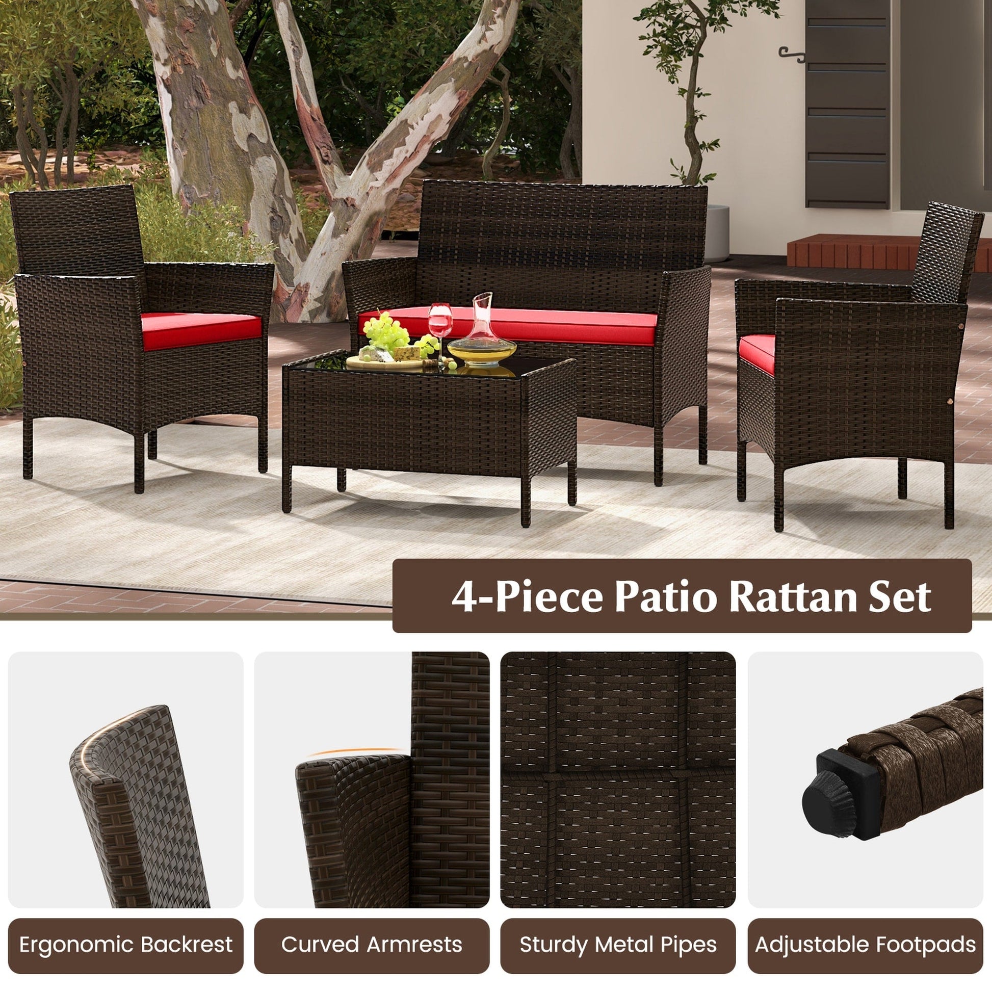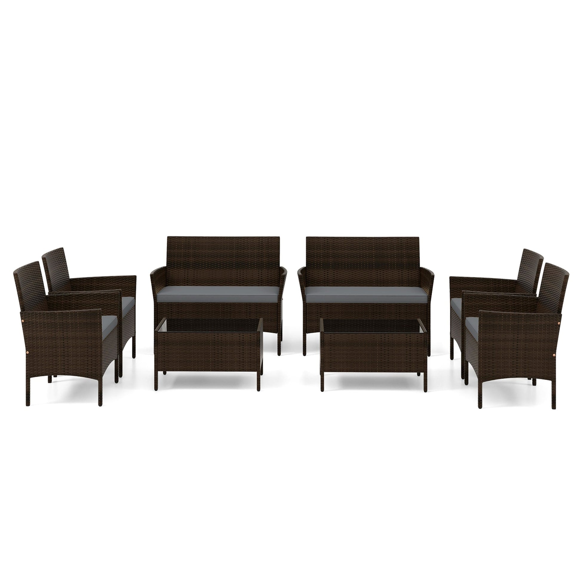 Set da conversazione in rattan da 8 pezzi, set di mobili da esterno con tavolino