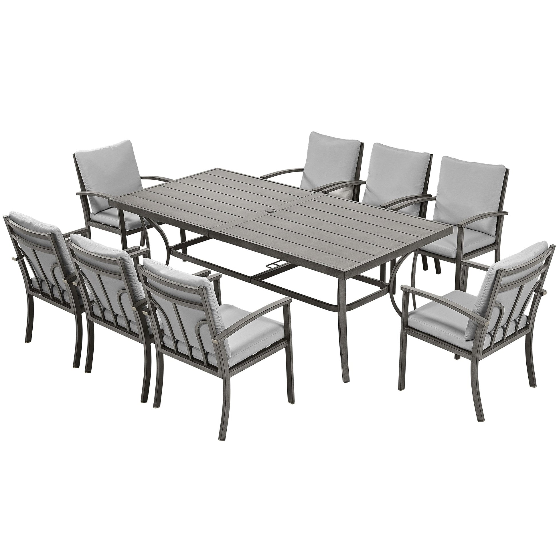 Set da pranzo da giardino in alluminio da 9 pezzi con tavolo e cuscini lavabili grigio chiaro
