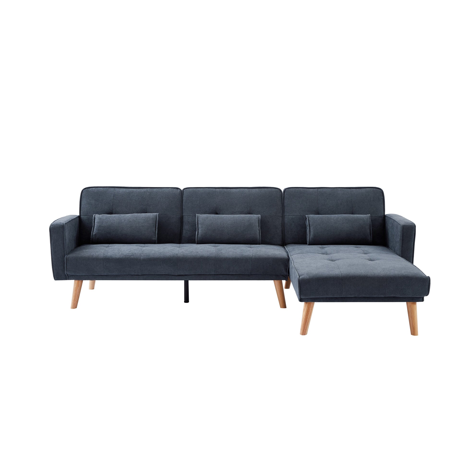Divano trasformabile in lino da 94,5'' a 3 posti: chaise longue destra, imbottitura in schiuma, borsa organizer e braccioli quadrati