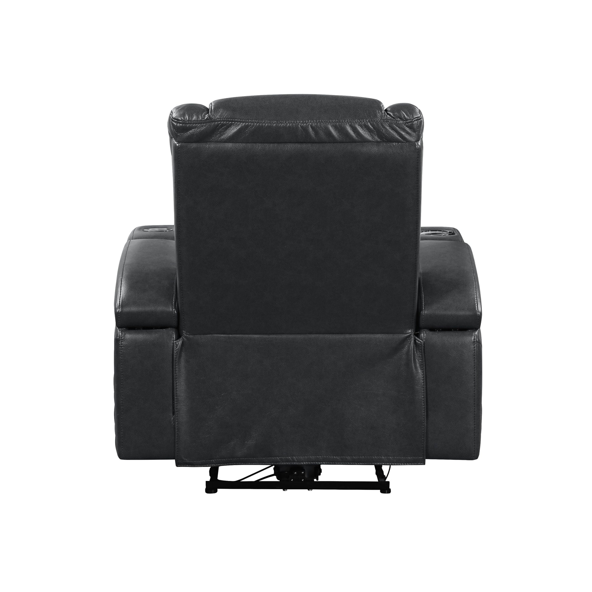 Poltrona reclinabile elettrica Alair Aire in pelle grigio scuro con Bluetooth e caricabatterie wireless, portabicchieri