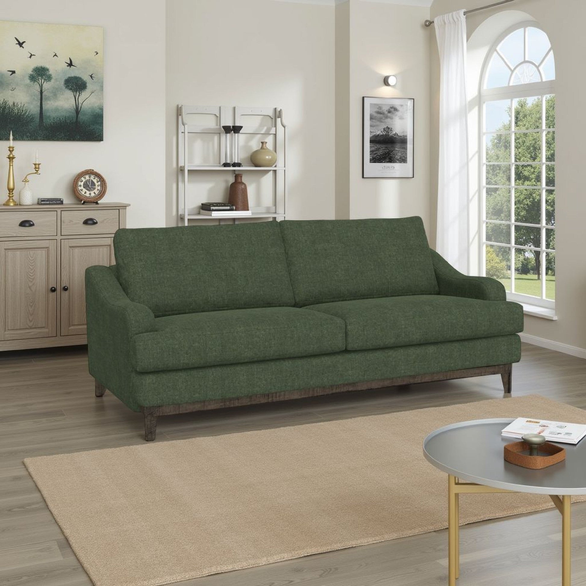 Divano Alfi, 2 cuscini, dettagli in stile classico, 85 pollici, legno massello, verde oliva