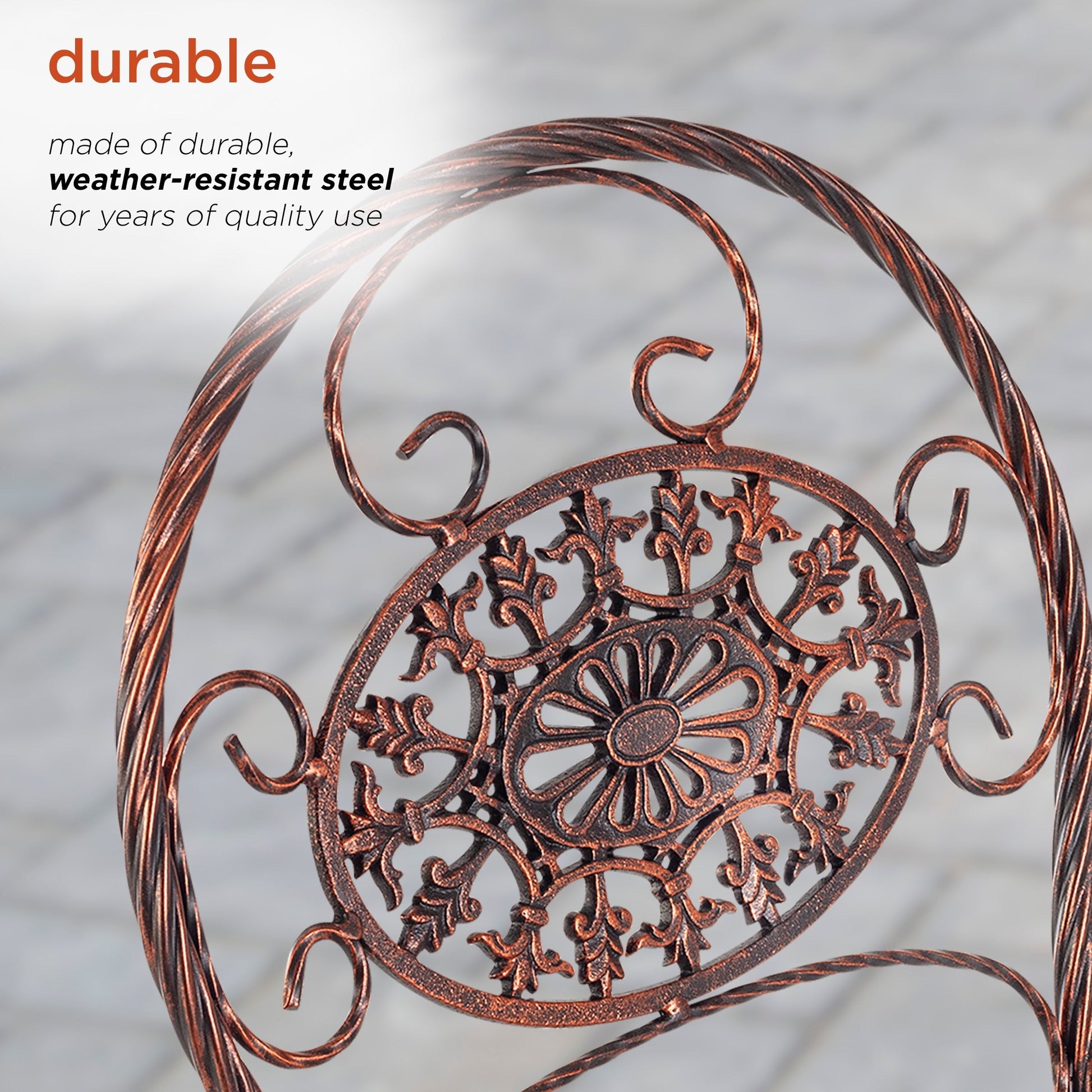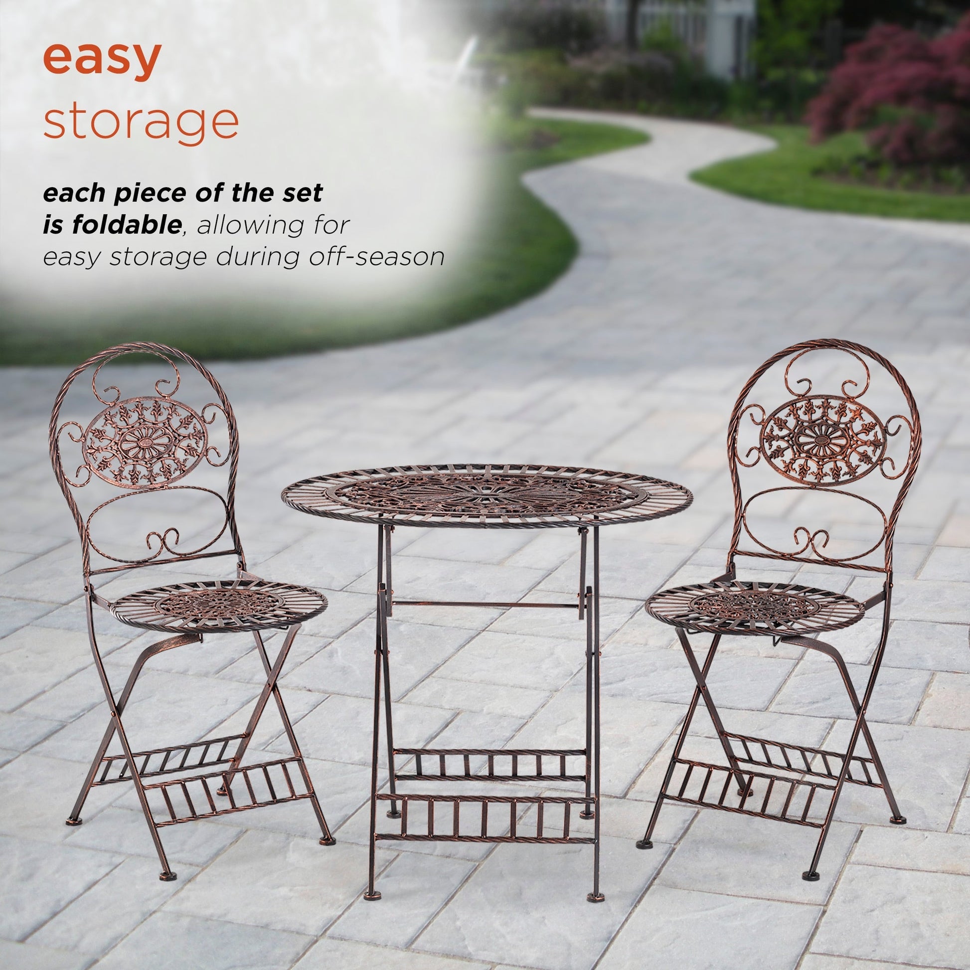 Migliora il tuo spazio all'aperto con il set da bistrot ovale da 3 pezzi Alpine Corporation. Realizzato in acciaio resistente alle intemperie, questo set in bronzo vanta intricate volute e un motivo a giglio, aggiungendo un tocco di eleganza senza tempo al tuo cortile, patio, terrazza o giardino. Che tu voglia rilassarti con un libro o intrattenere gli ospiti, questo set è perfetto per sorseggiare bevande e goderti il ​​bel tempo estivo. Include due sedie pieghevoli e un tavolo per riporlo facilmente durante la bassa stagione. Inoltre, con una garanzia del produttore di 1 anno, puoi fidarti della qualità del tuo acquisto.
