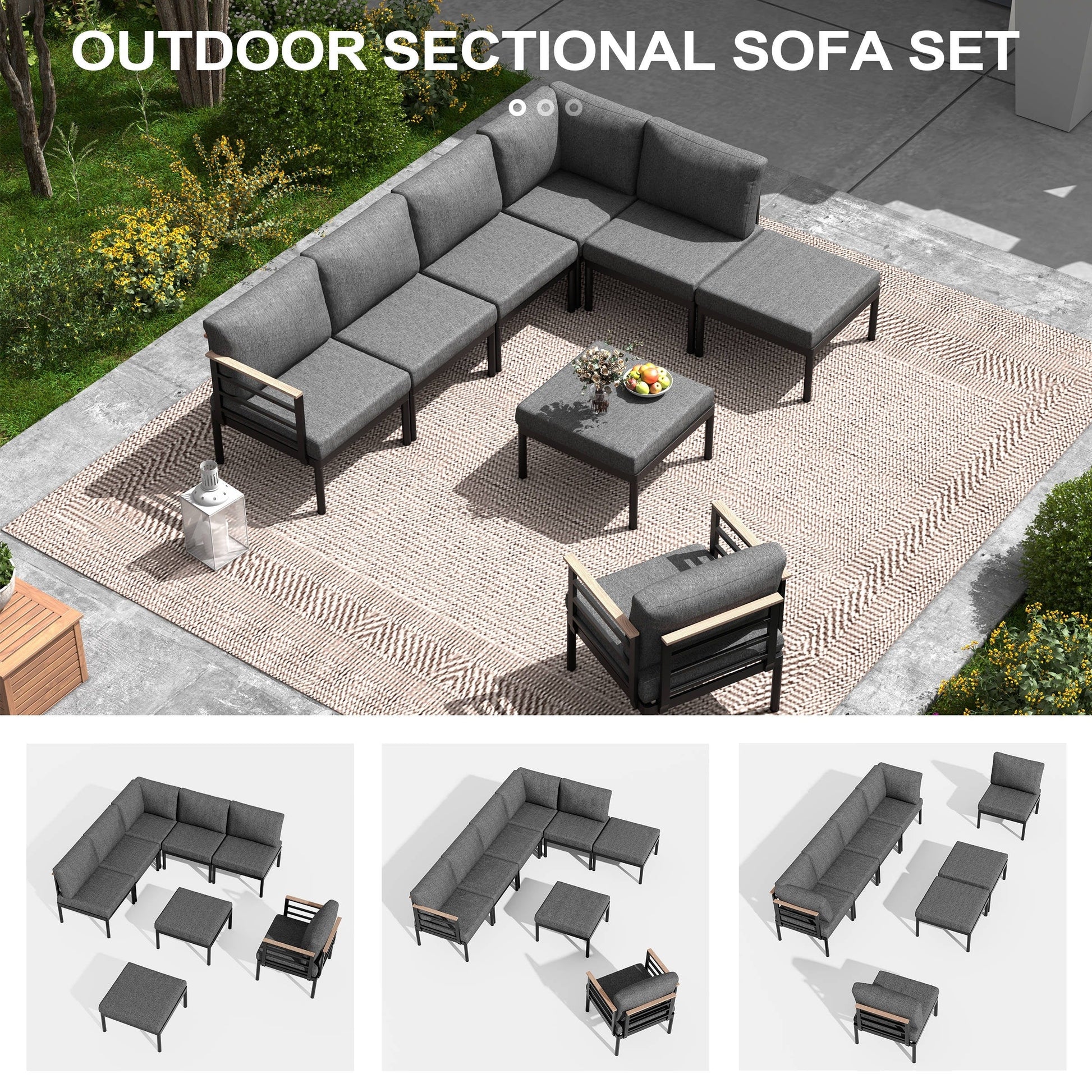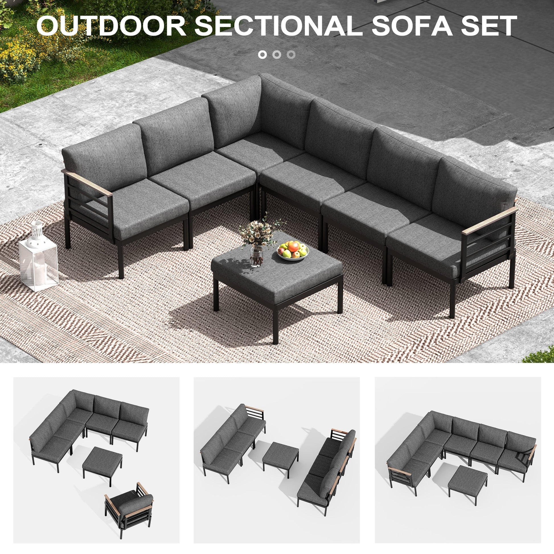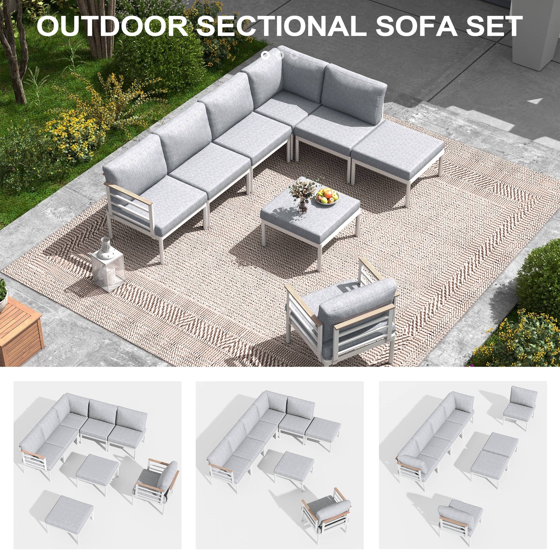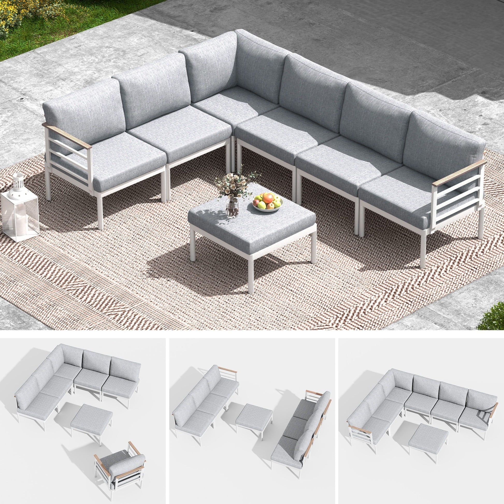 Set di mobili da giardino in alluminio da 6/7/8 pezzi, set di divani componibili per esterni moderni