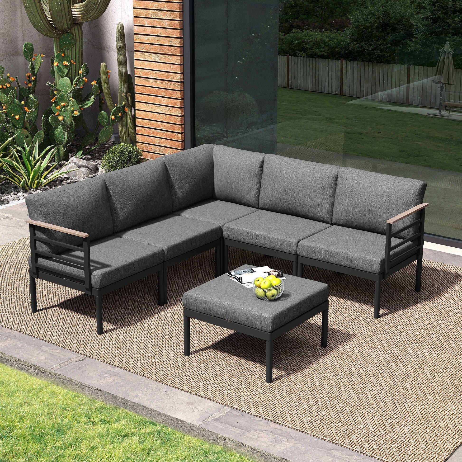Rilassati nel massimo comfort nel tuo patio con il set di divani componibili in alluminio da esterno moderno da 6/7/8 pezzi di Crestlive Products. Realizzata con una struttura in alluminio leggera ma robusta con verniciatura a polvere, questa versatile sedia imbottita fa parte di una collezione per esterni che si sposta e si combina in base alla quantità e alle esigenze del momento. Dotato di cuscini in tessuto resistenti alle intemperie, il set di divani componibili da esterno Crestlive per la conversazione in giardino lascia un'impressione positiva su amici e familiari, valorizzando al contempo il tuo patio, il tuo giardino o il tuo rifugio a bordo piscina con un tocco di originalità.