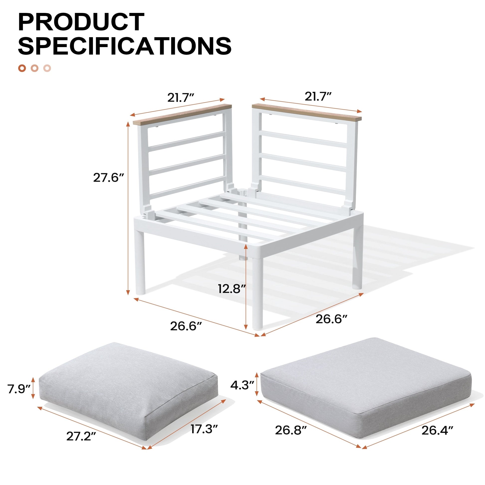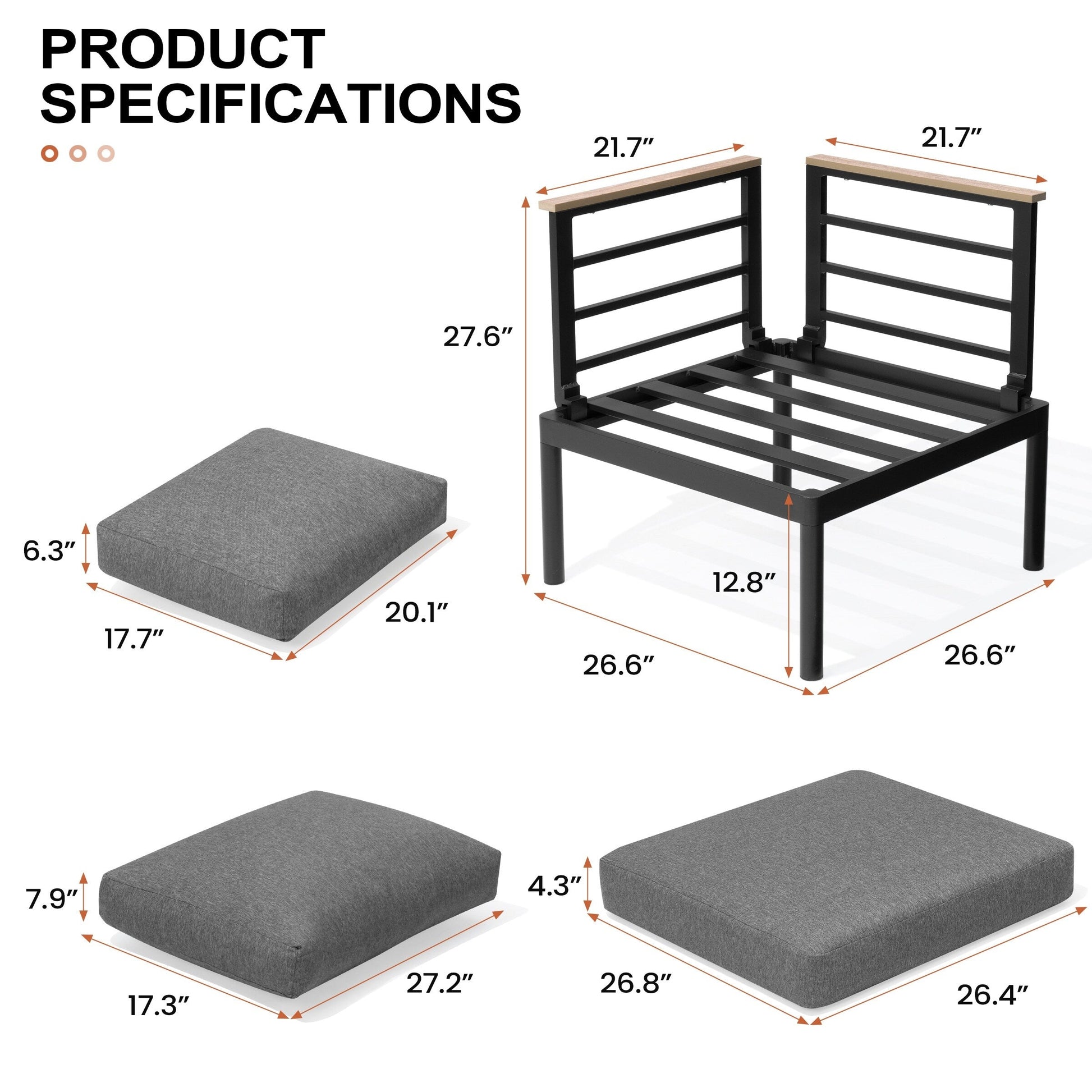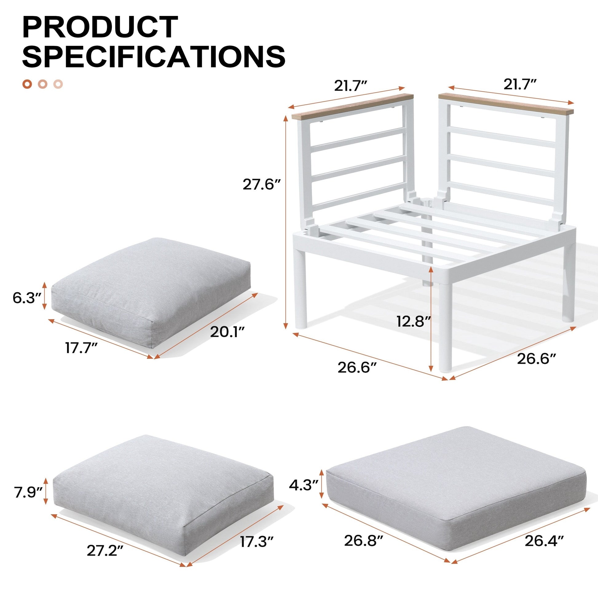 • Cuscino del sedile: 26,8 pollici di lunghezza x 26,4 pollici di larghezza x 4,3 pollici di spessore.