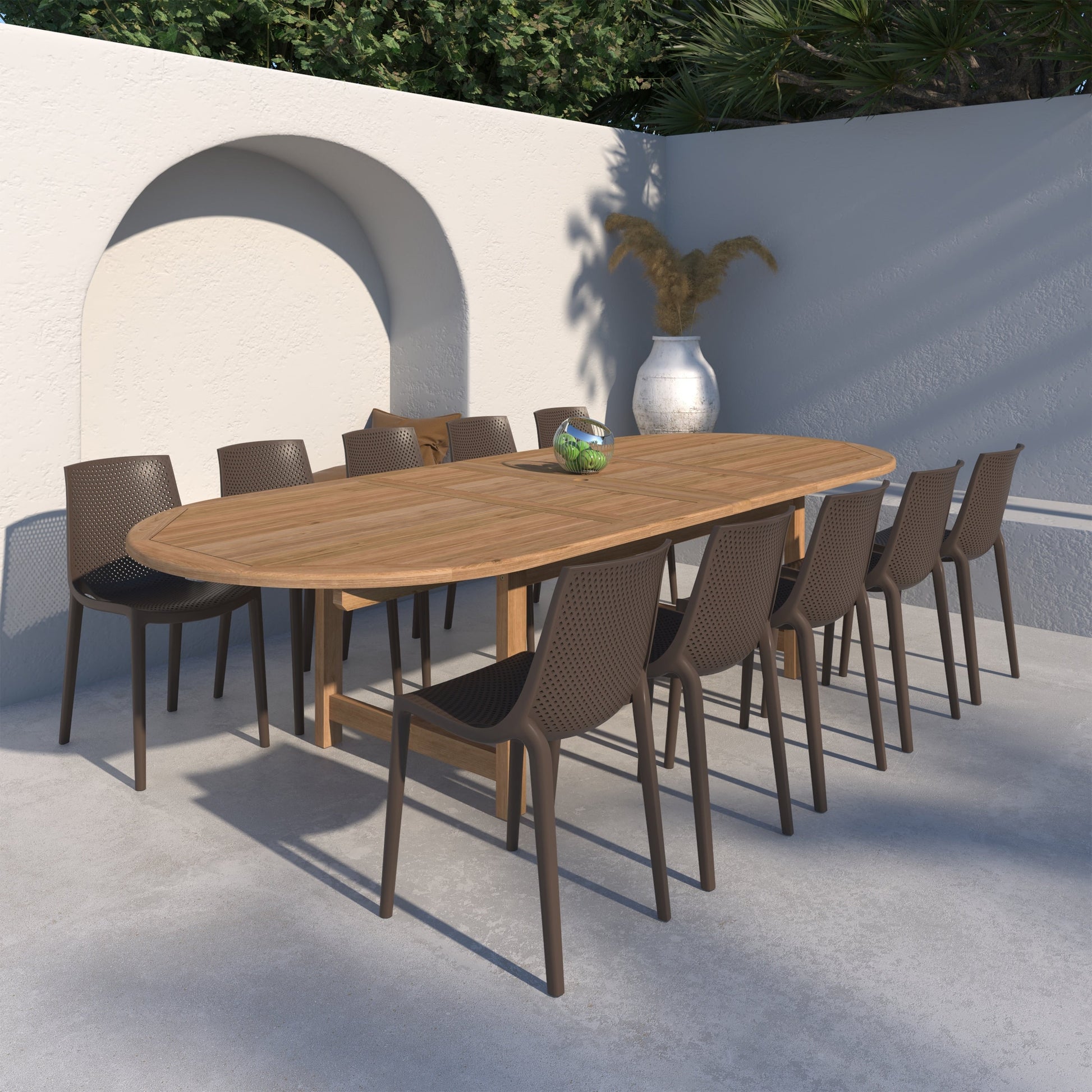 Set da pranzo per esterni Amazonia da 11 pezzi in teak e resina