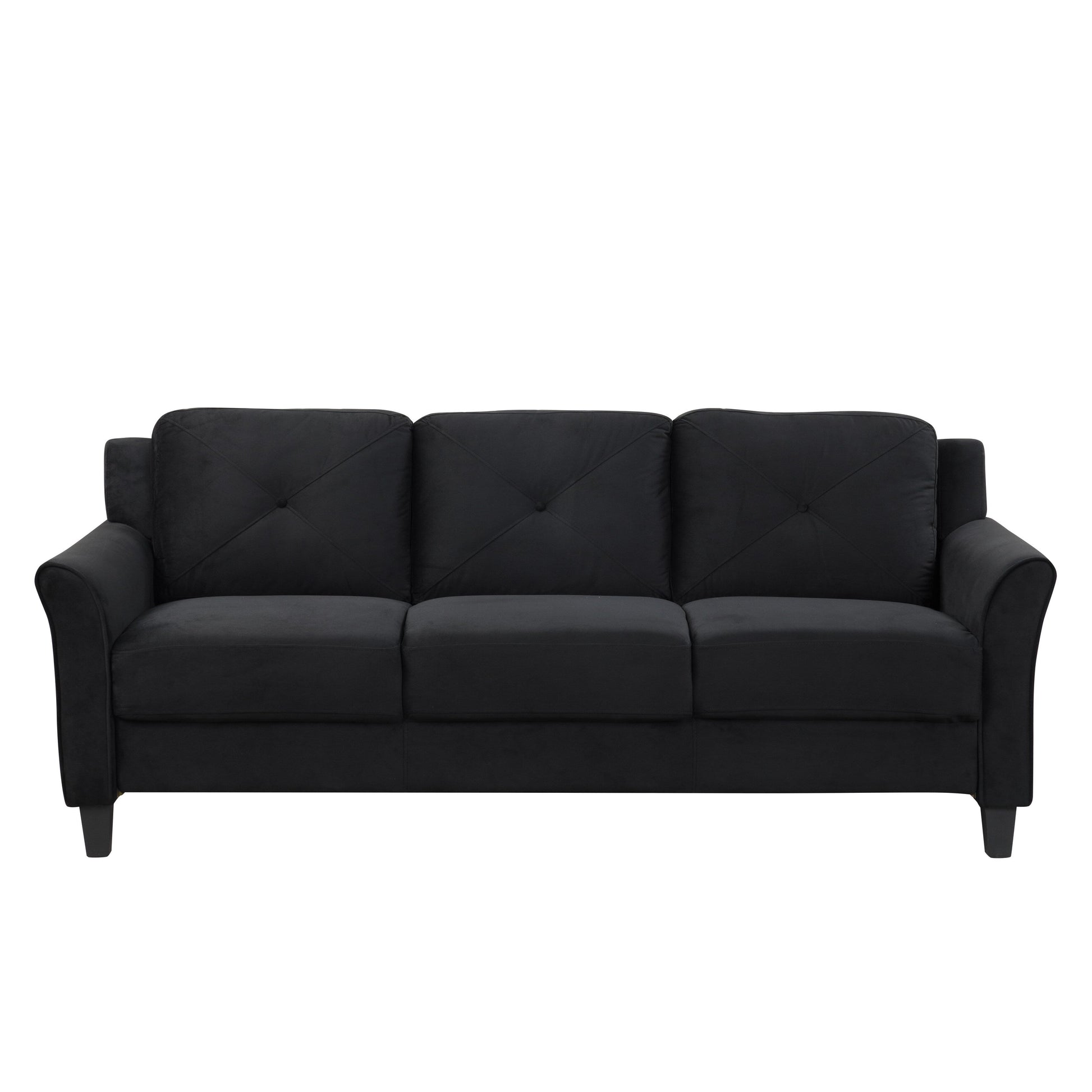 Divano a 3 posti in poliestere nero antico con struttura in legno