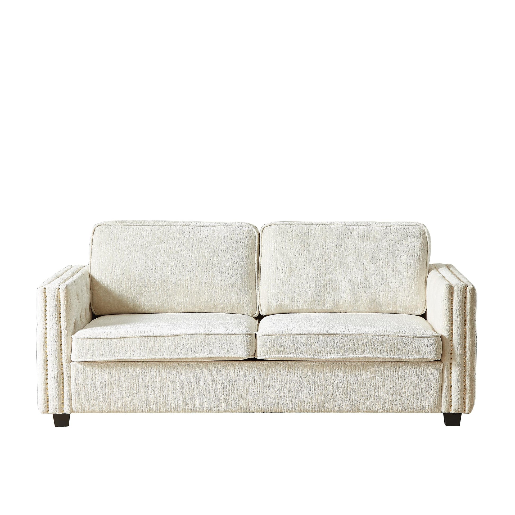 Divano letto a 3 posti beige 81 Chenille Nailheads con materasso in memory foam per soggiorno