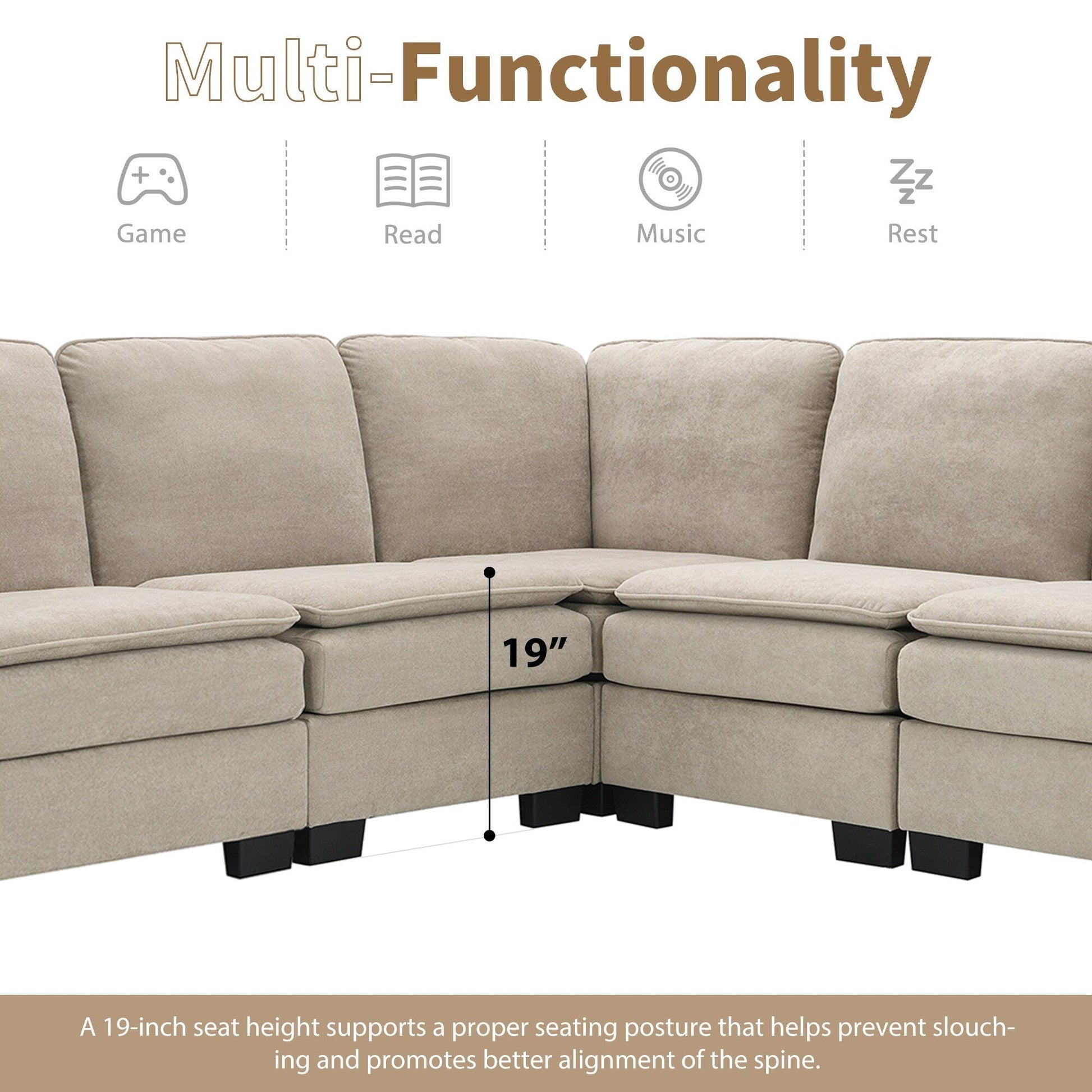 Divano componibile a L in velluto beige da 89'' a 5 posti con doppi cuscini