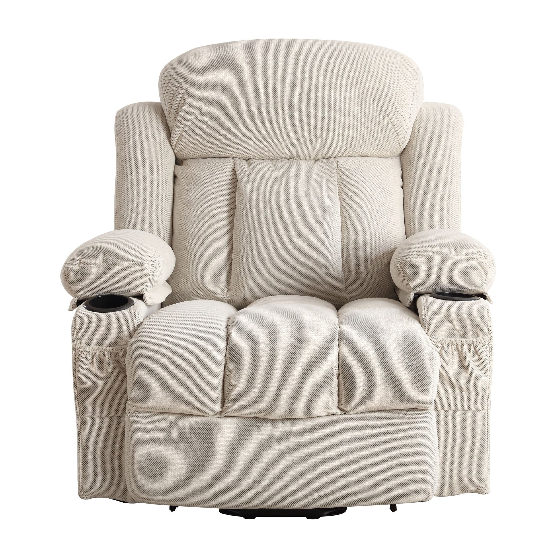Poltrona reclinabile elettrica beige con riscaldamento, massaggio, porta USB, tasche laterali e telecomando