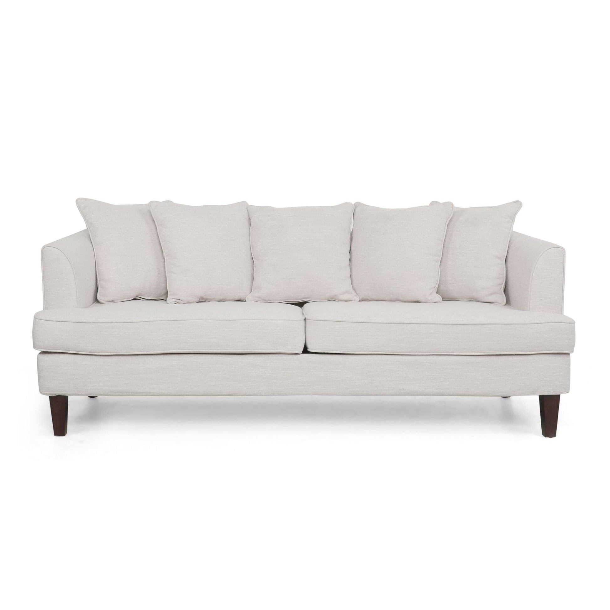 Divano moderno beige da 73,5 posti imbottito con cuscini e gambe in legno per soggiorno