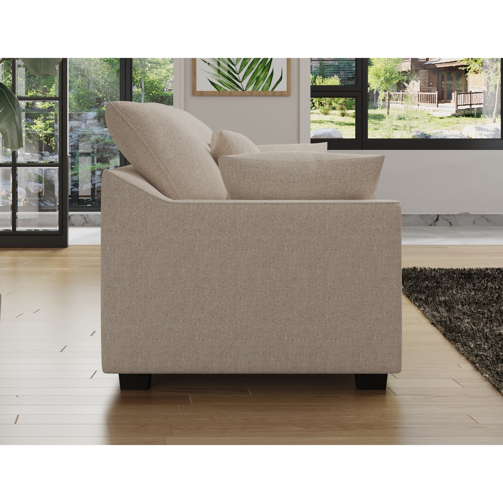 Divano moderno beige 78,7 in poliestere a 3 posti con cuscini e gambe in legno massello per soggiorno