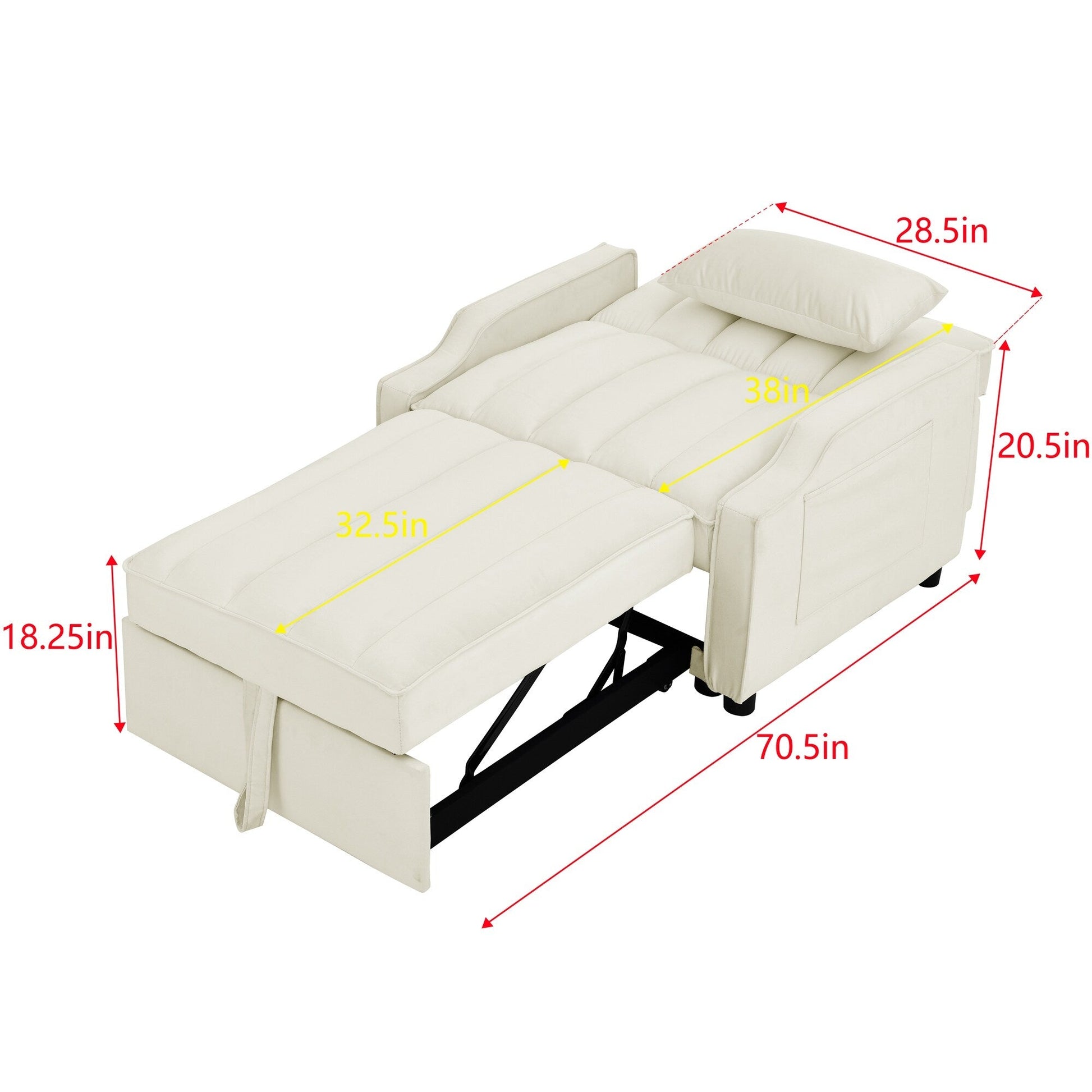 Divano letto singolo convertibile in velluto beige con letto estraibile