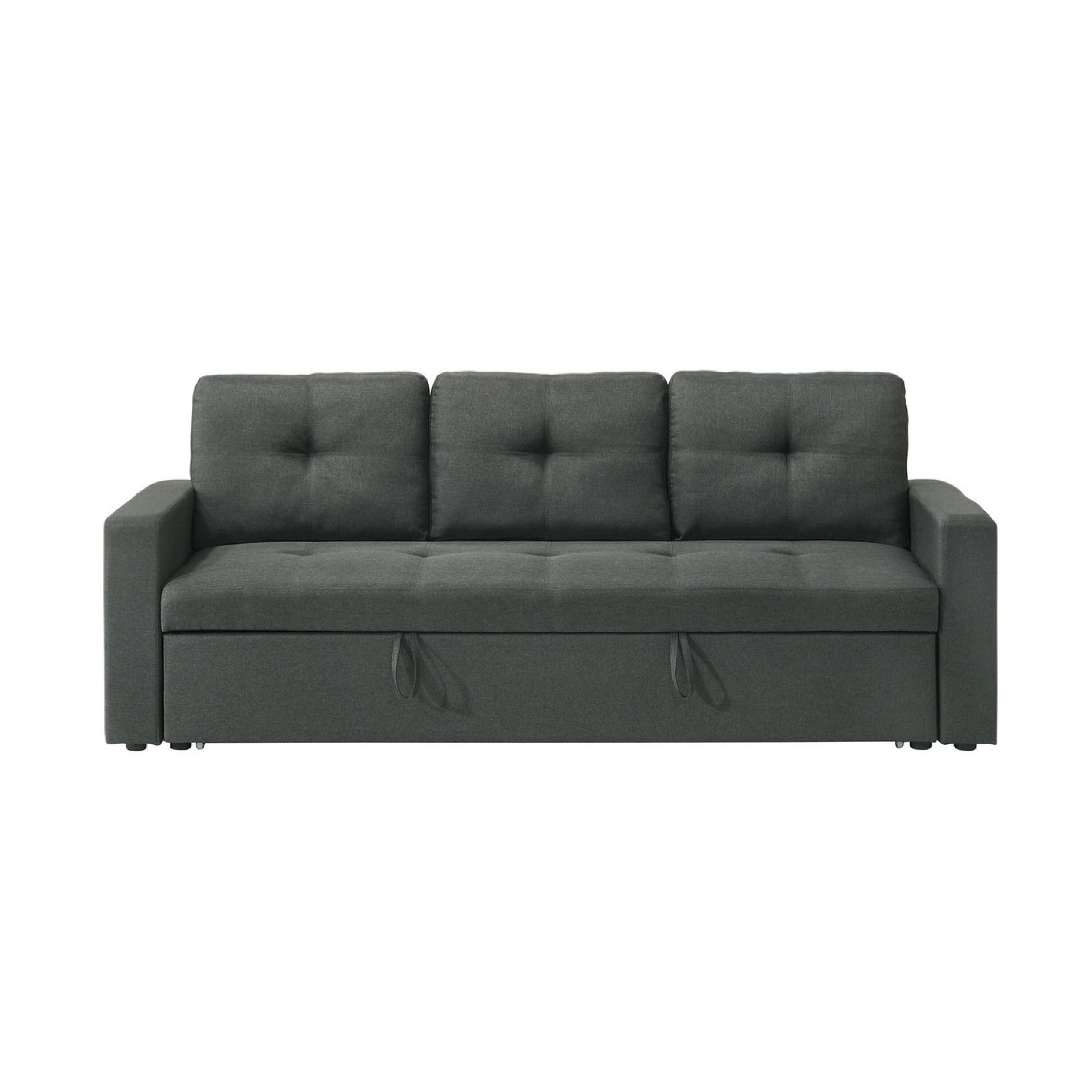 Divano letto estraibile Biry, cuscini trapuntati, tessuto grigio...