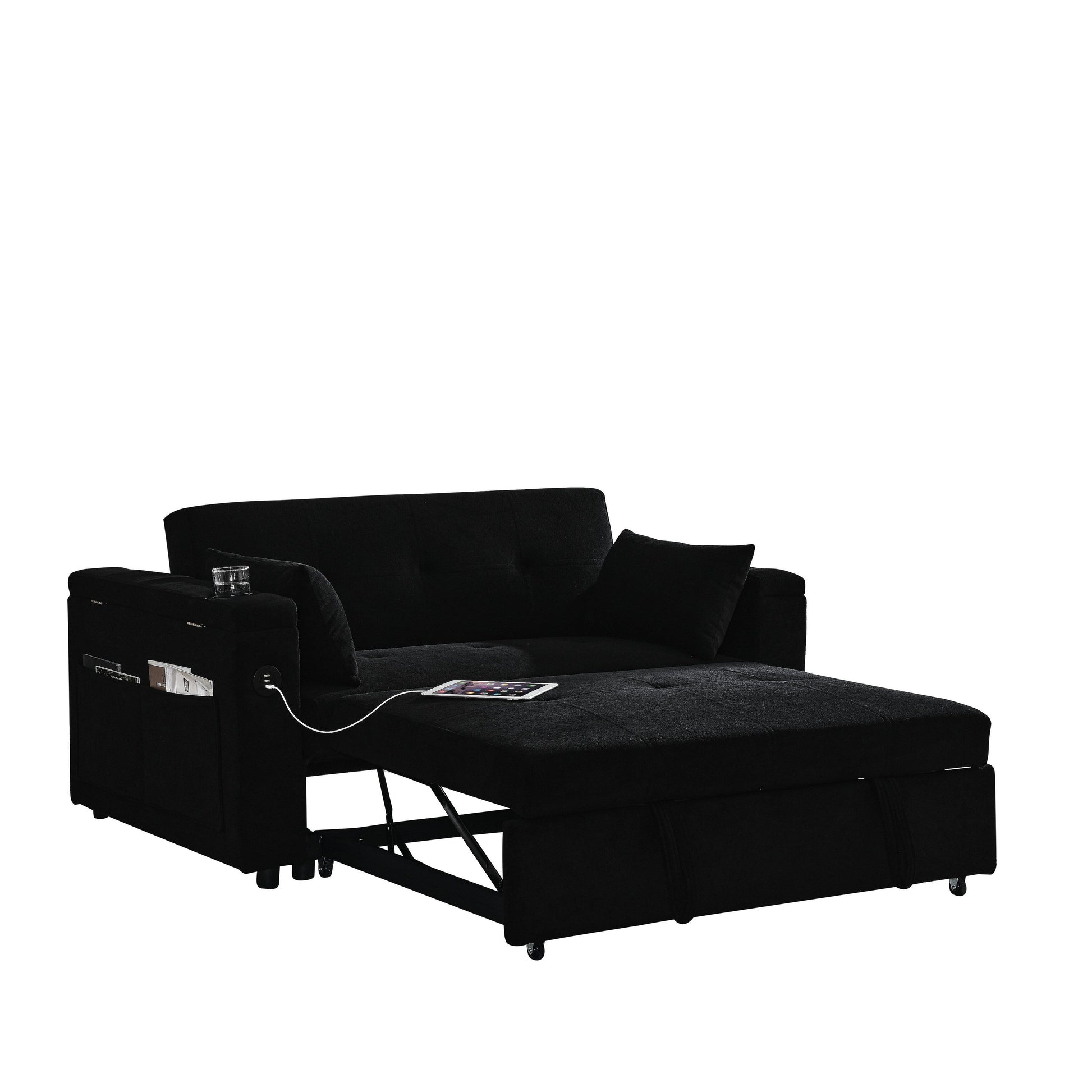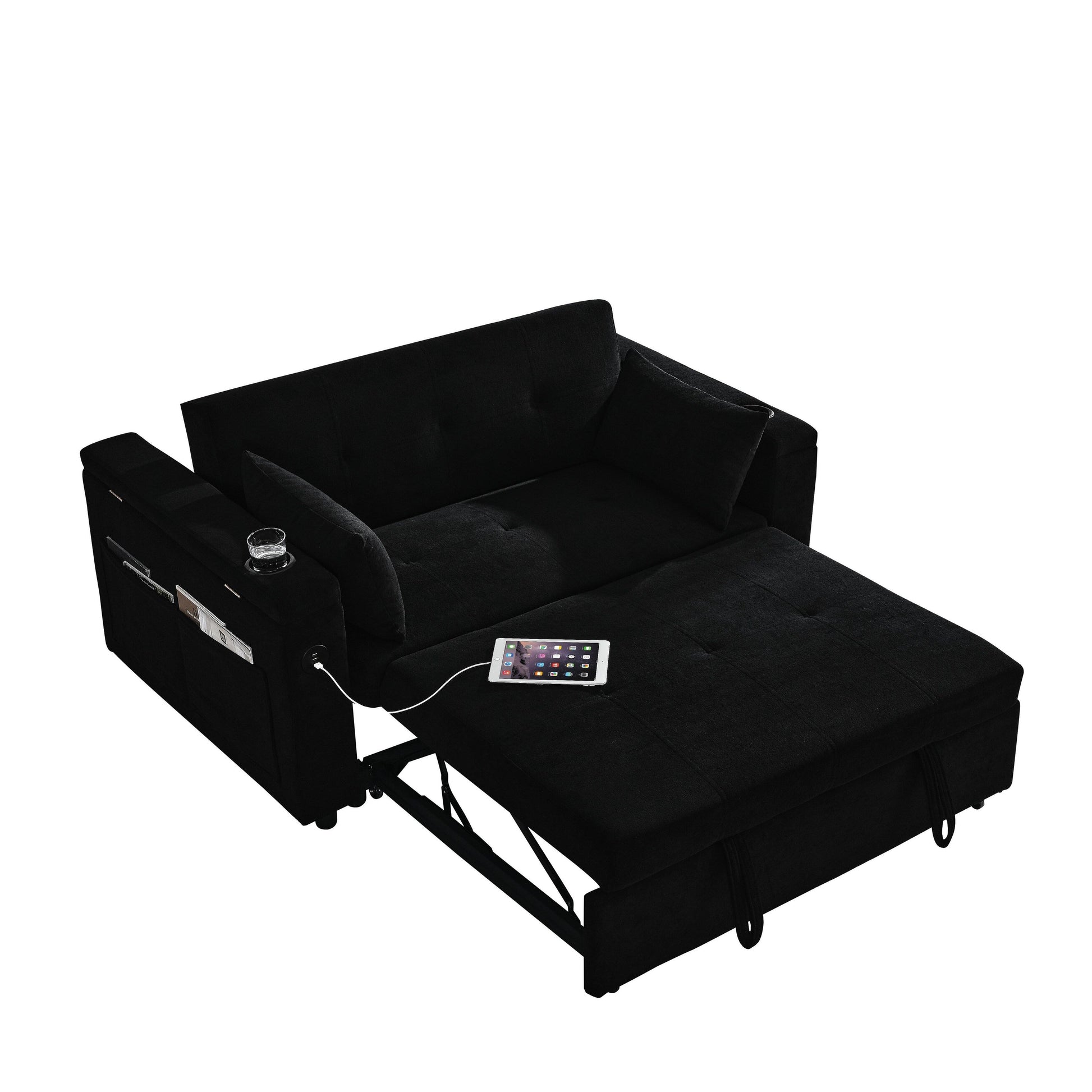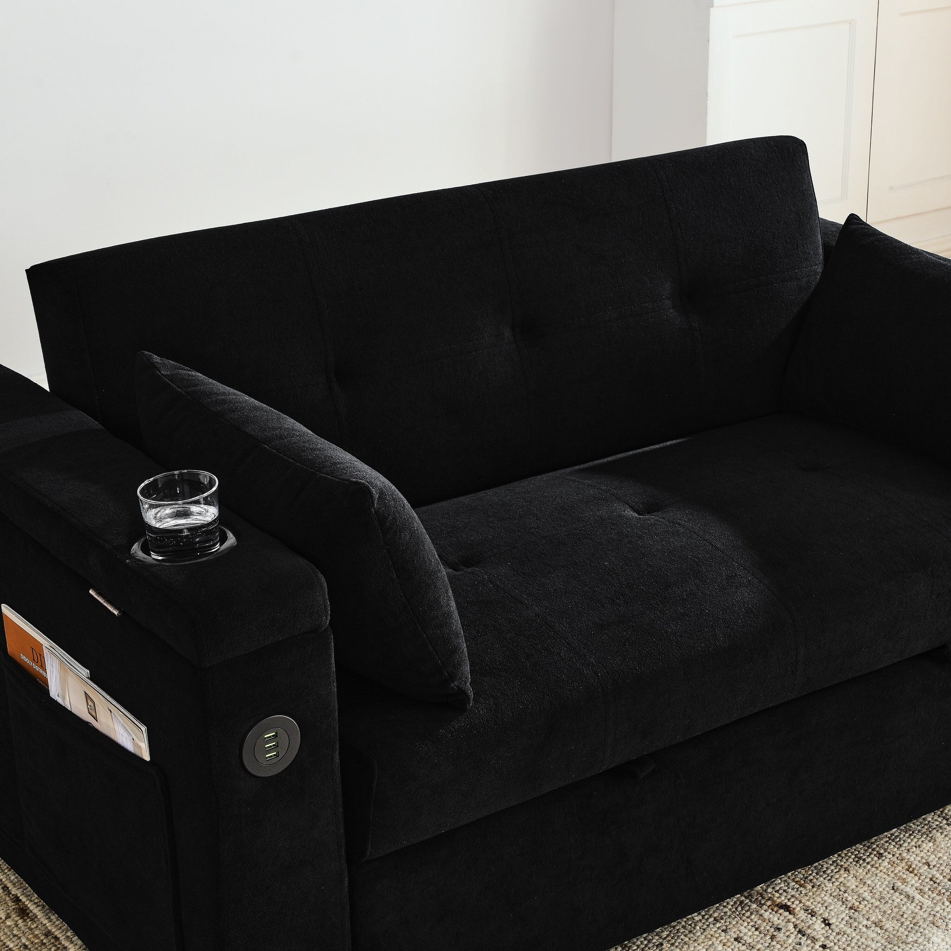 Divano in tessuto nero da 54'' a due...