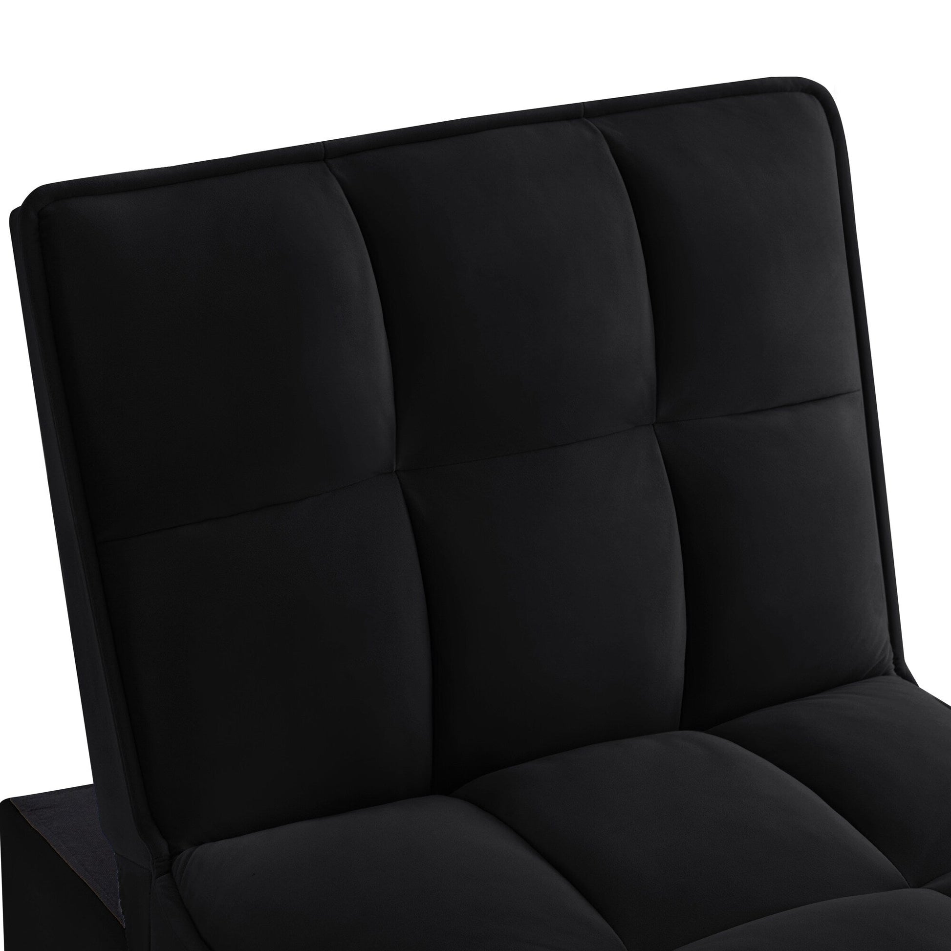 Divano letto singolo pieghevole in velluto nero 68,5 con schienale regolabile e cuscini per soggiorno