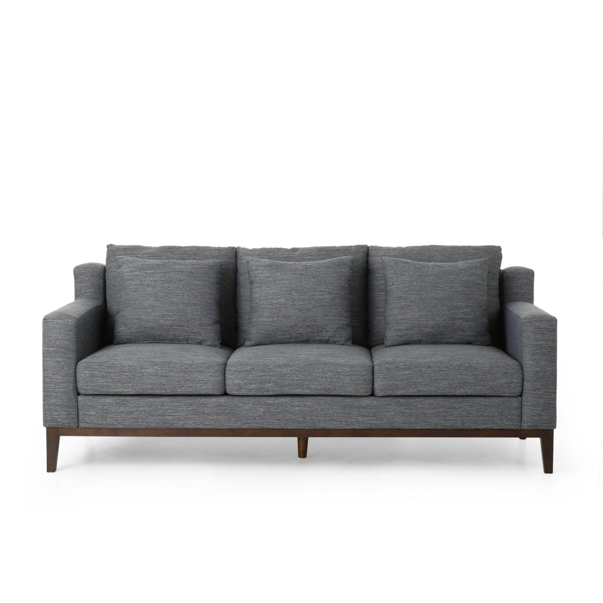 Divano a 3 posti in tessuto nero da 80'' con 3 cuscini, base in legno, struttura in legno massello
