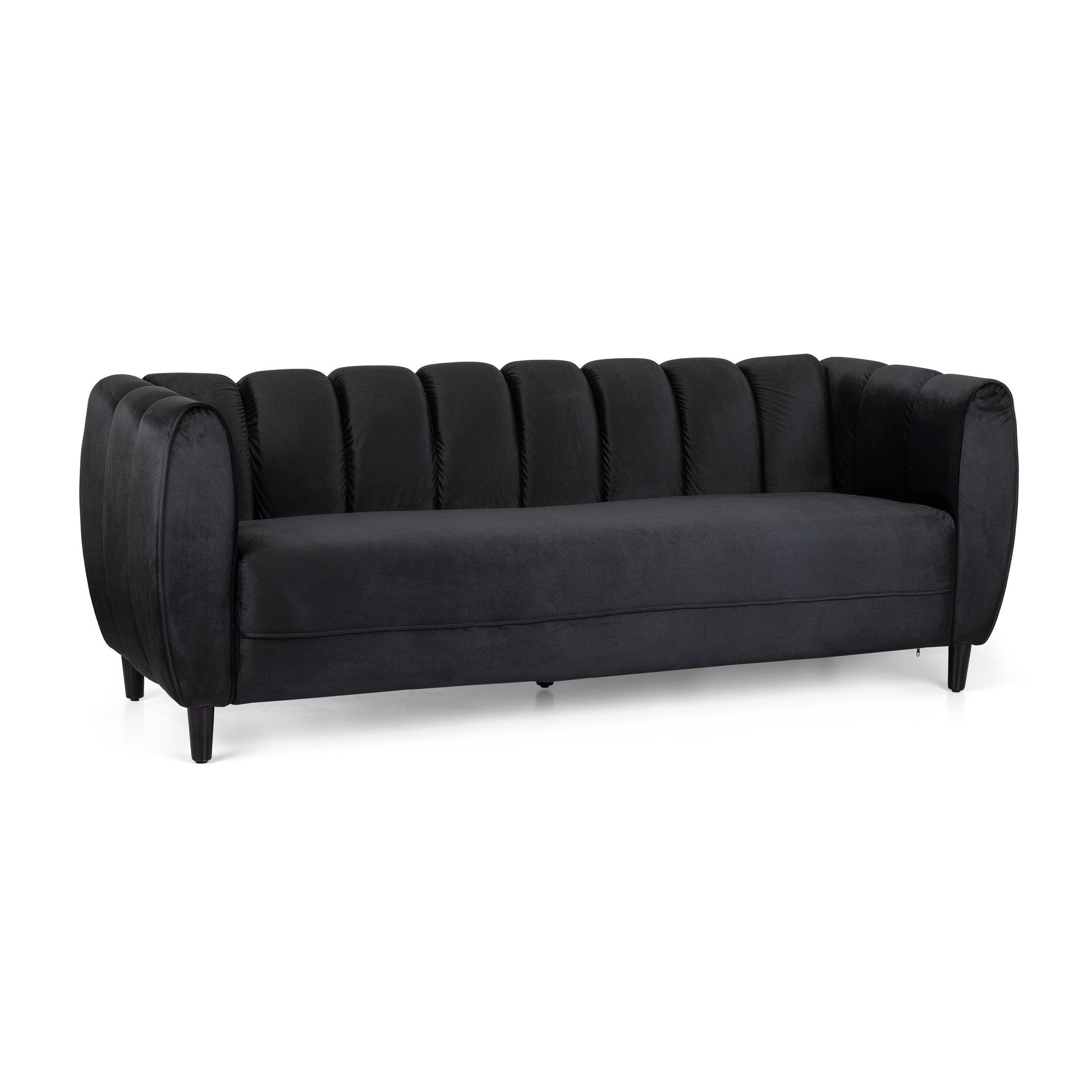 Divano a 3 posti imbottito in velluto nero...