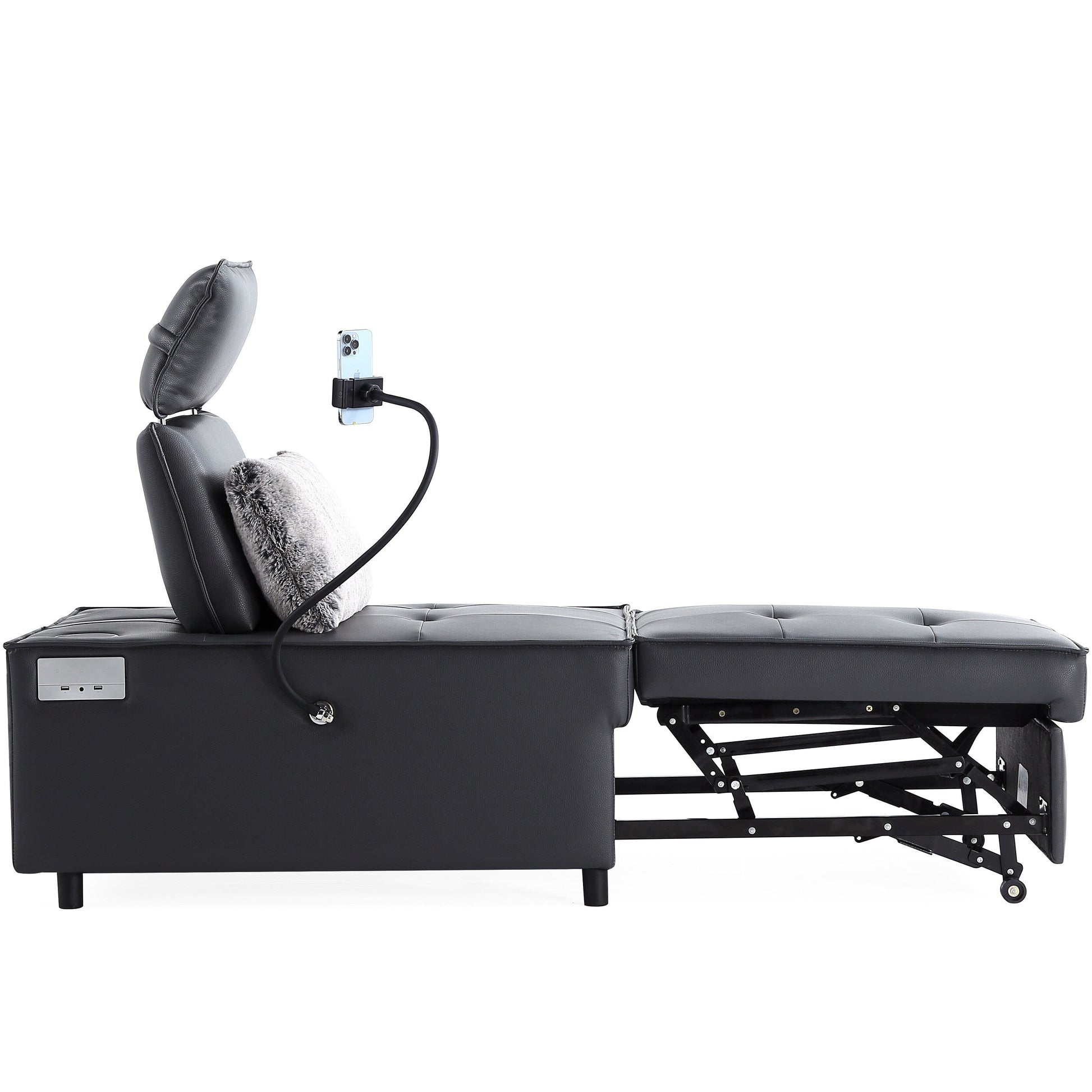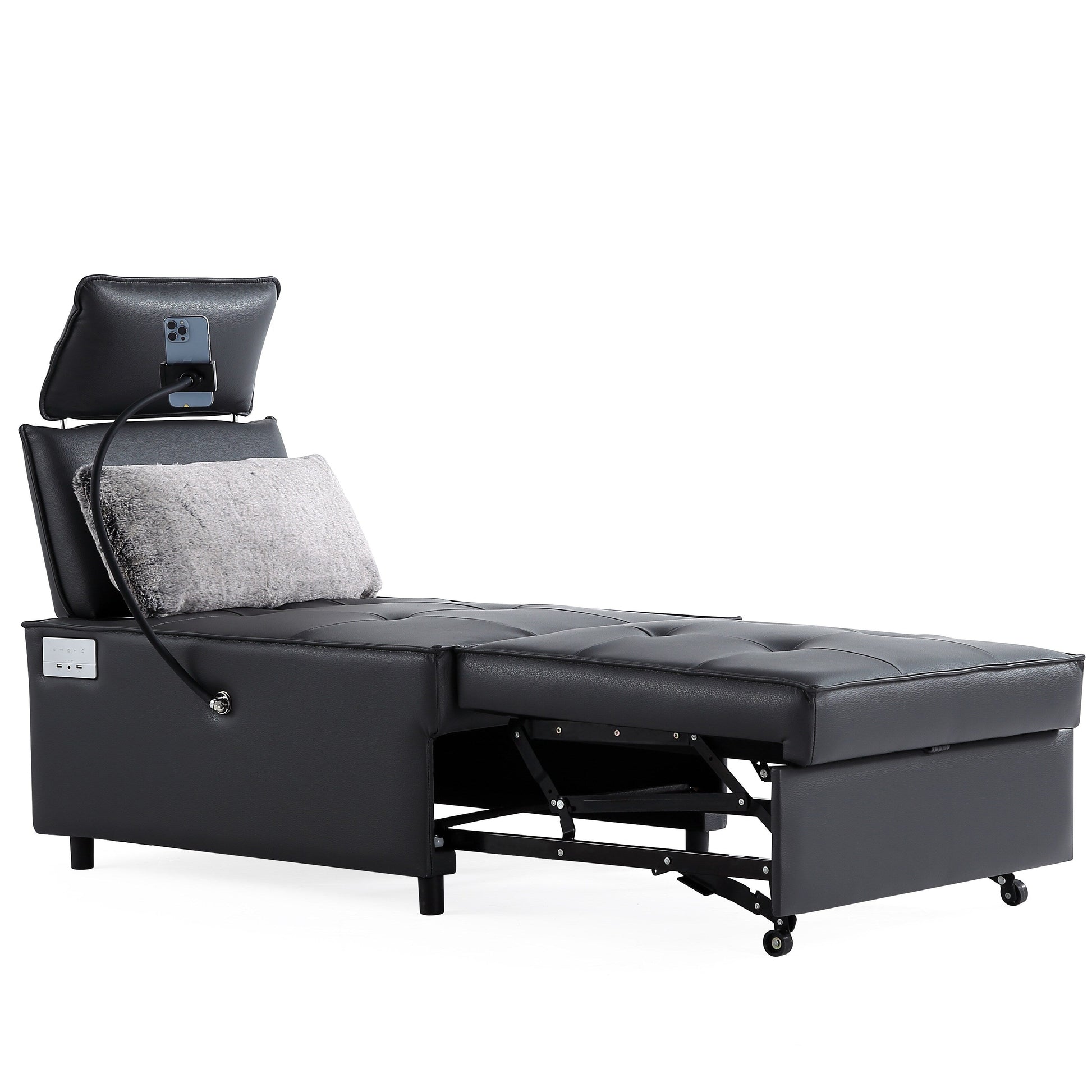 Divano letto in pelle nera con altoparlante Bluetooth...