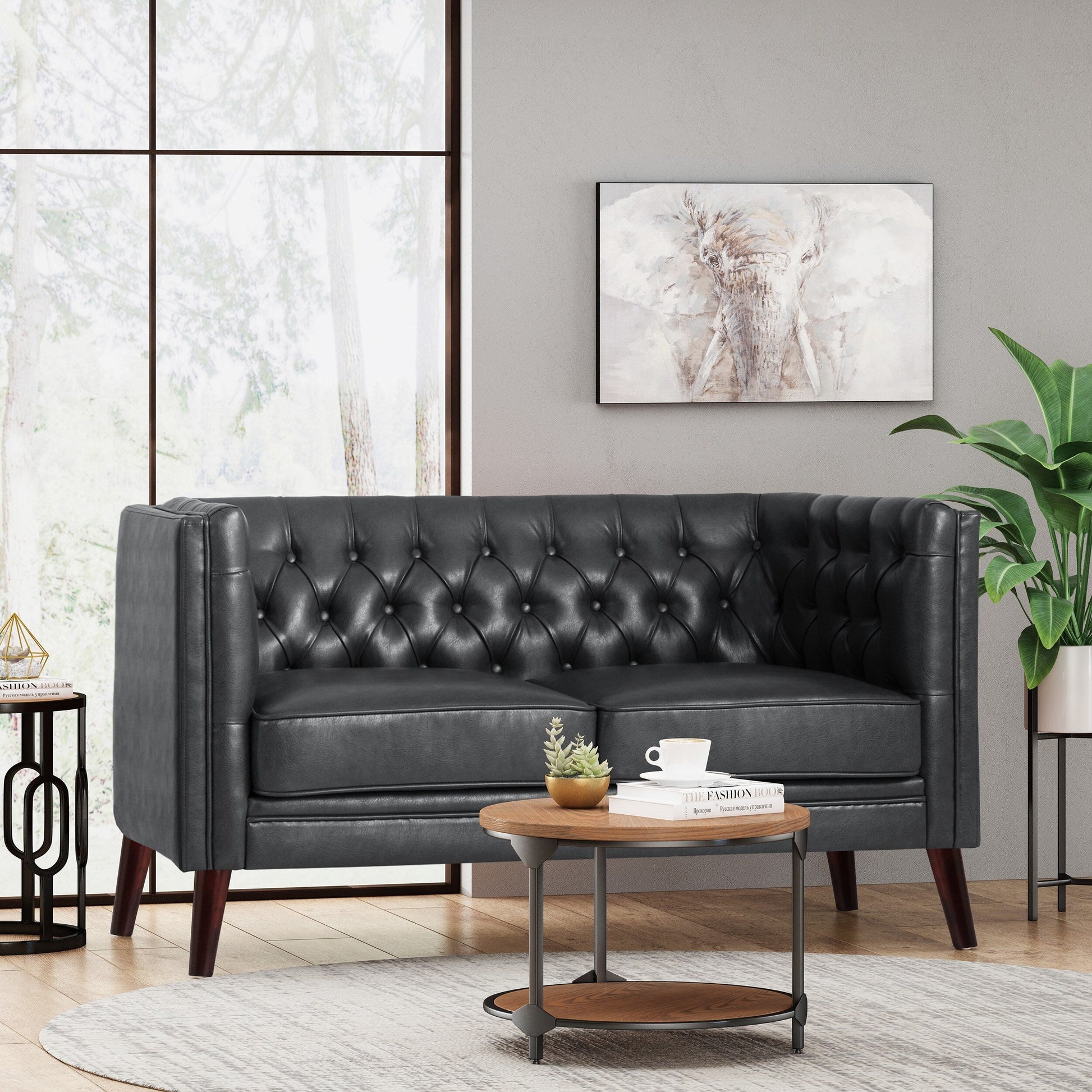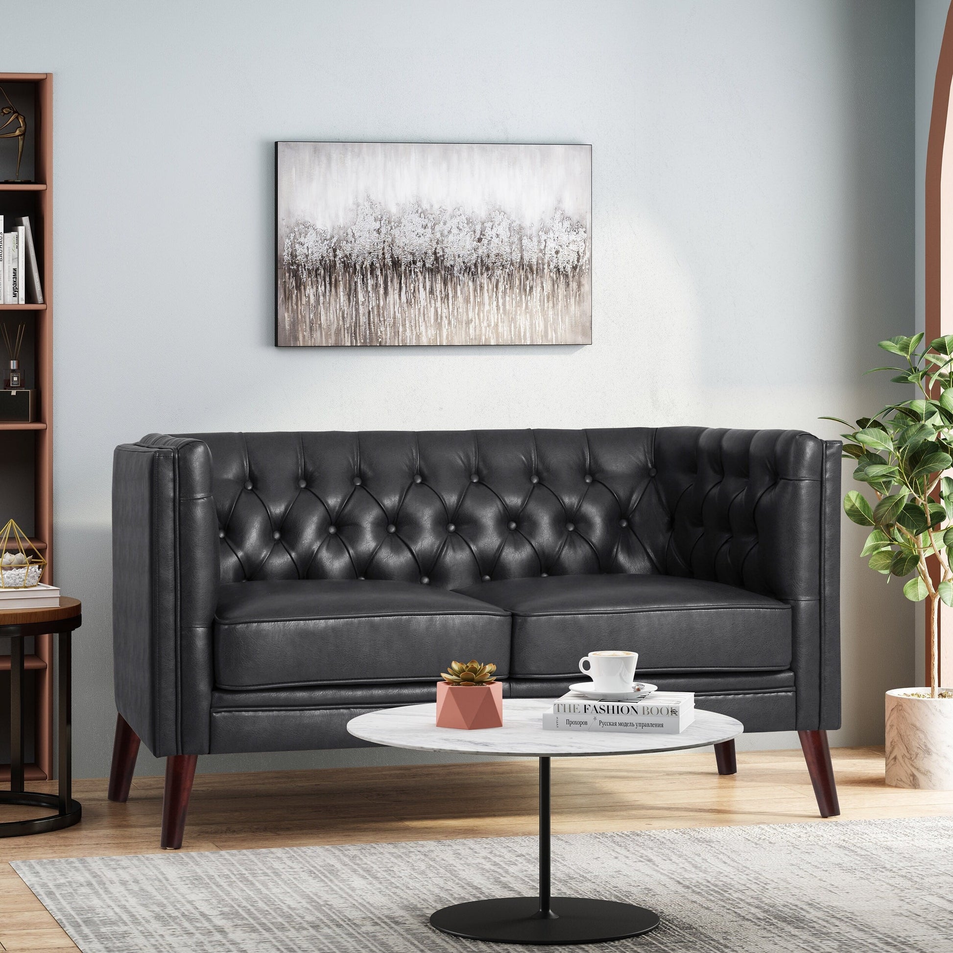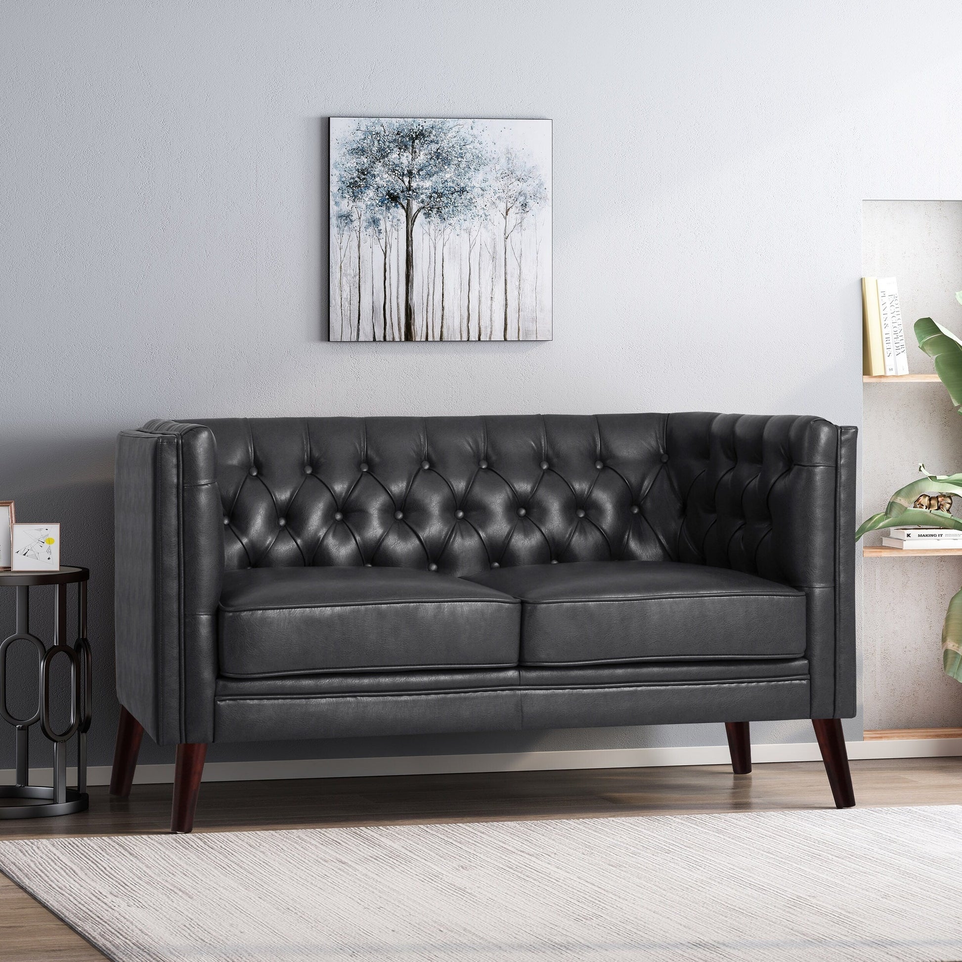 • DESIGN CONTEMPORANEO: Caratterizzato da raffinate cuciture a rombi con bottoni trapuntati e gambe splendidamente divaricate, il nostro divano a due posti offre l'aspetto, la sensazione e il design di un pezzo davvero contemporaneo con un tocco di fascino di metà secolo. Con una struttura minimalista ma raffinata, questo set esalta uno stile semplice che enfatizza comfort e funzionalità.