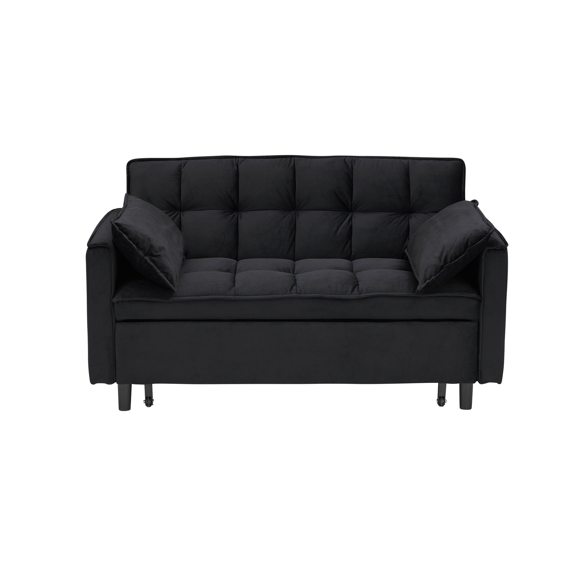 Divano letto trasformabile in velluto 3 in 1 moderno nero da 55 pollici con schienale e cuscini per soggiorno