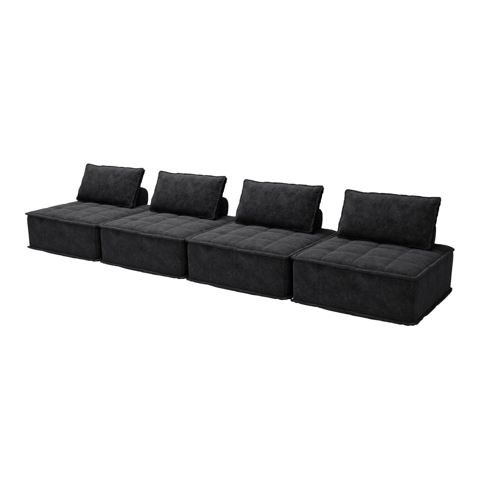 Set di divani modulari quadrati in ciniglia nera oversize da 4 pezzi con cuscini in schiuma ad alta densità, combinazione libera