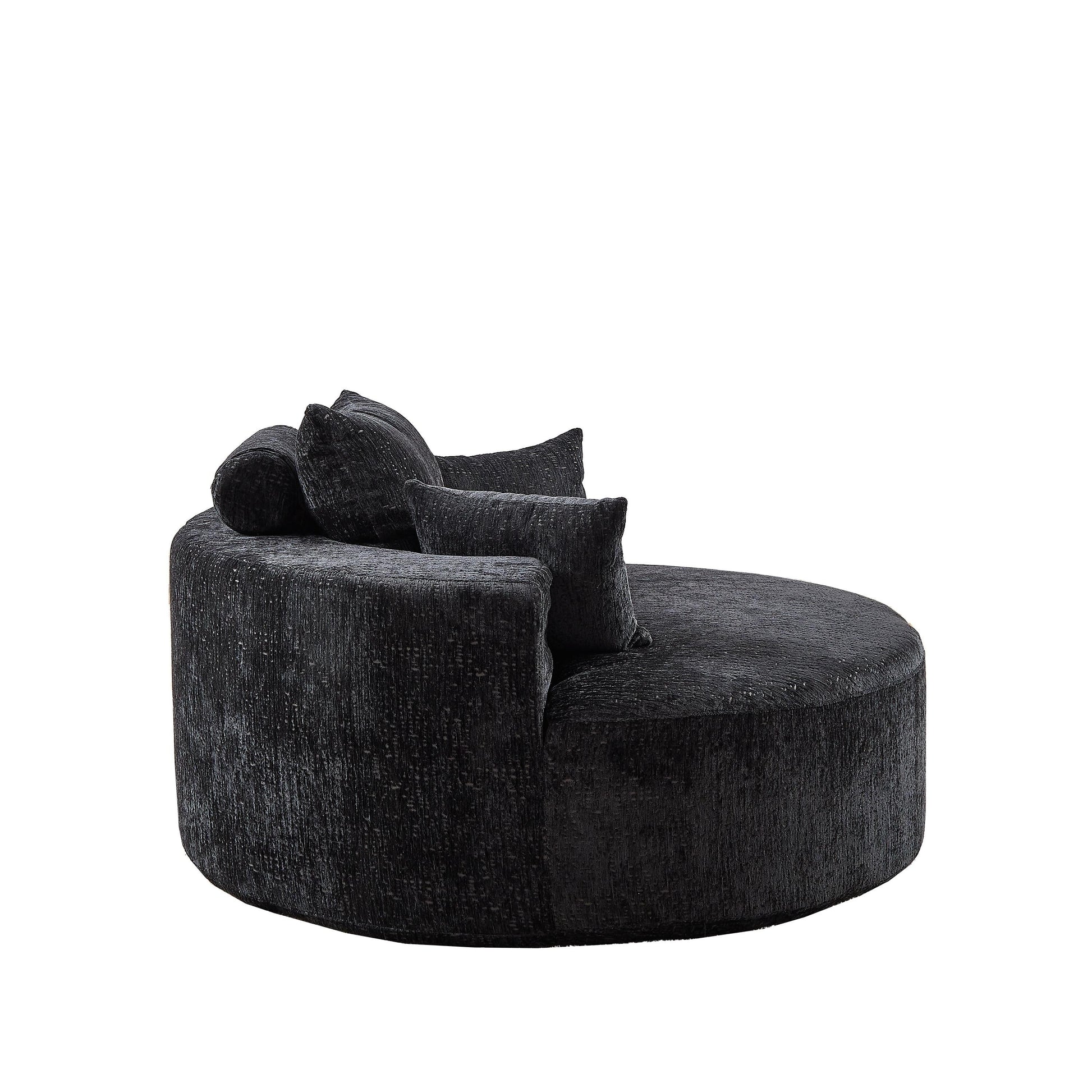 Divano letto singolo rotondo in ciniglia nera con cuscino per lo schienale