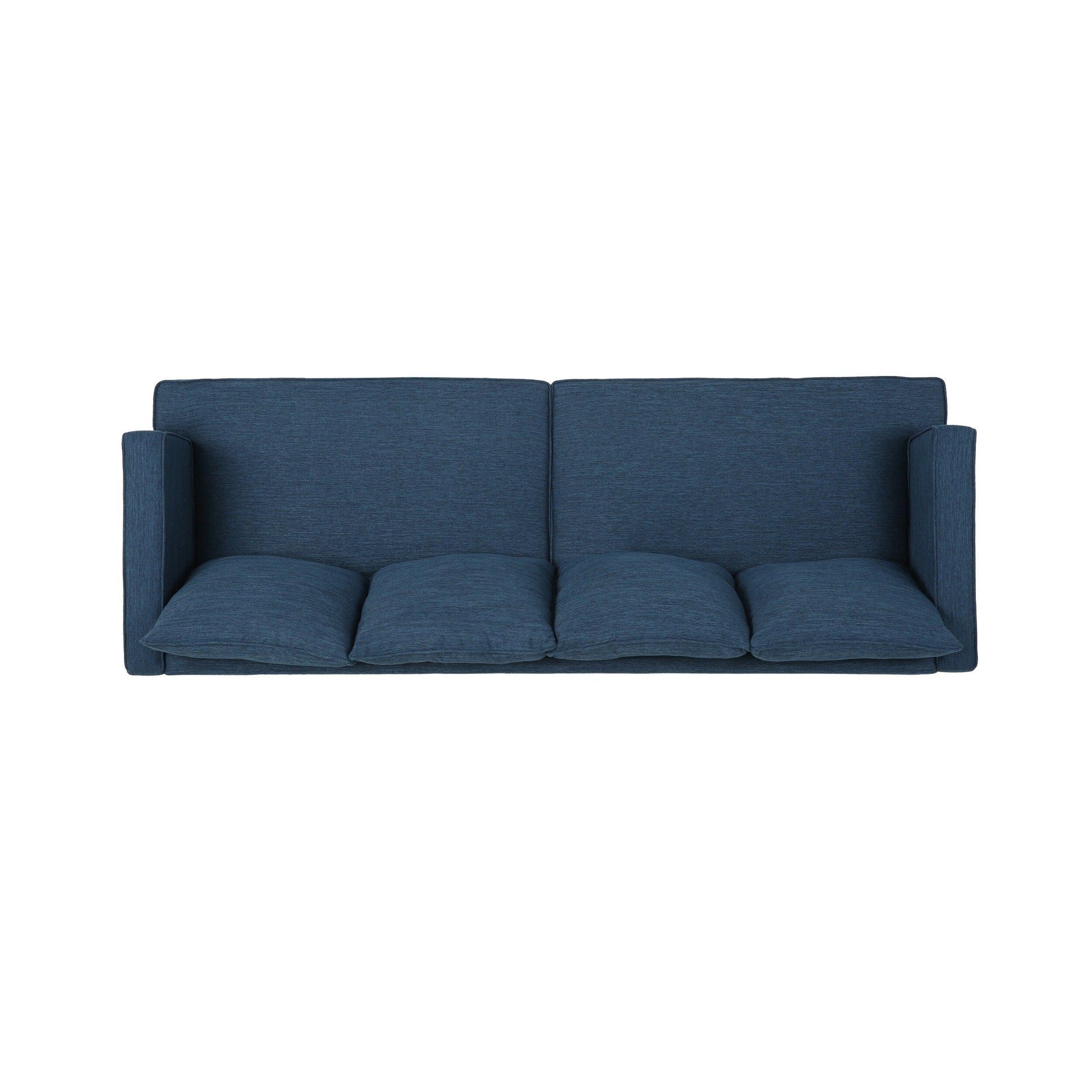 Divano a 3 posti in poliestere blu da 86'' con schienale trapuntato, gambe in legno massello e supporto a molle insacchettate - Modern Comfort