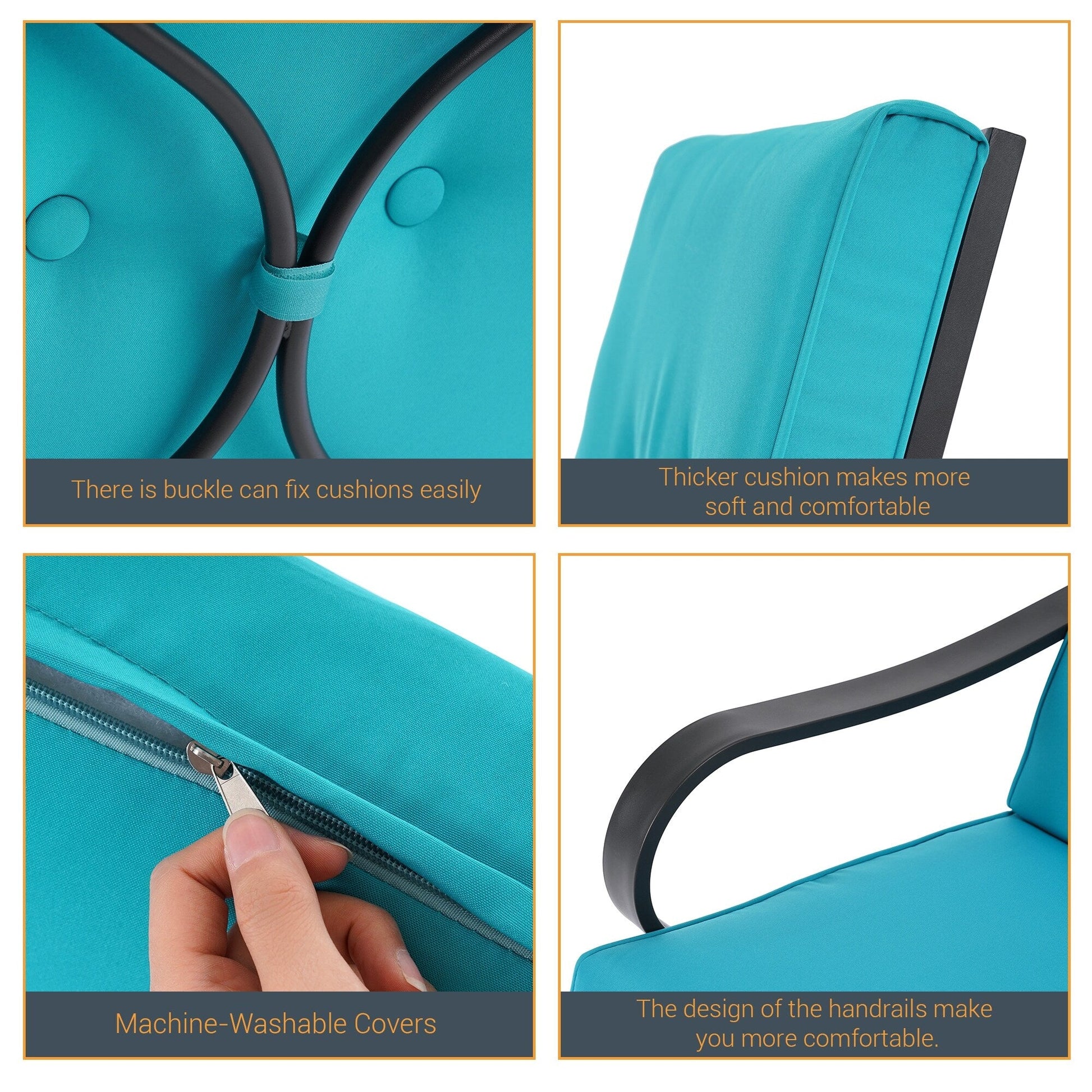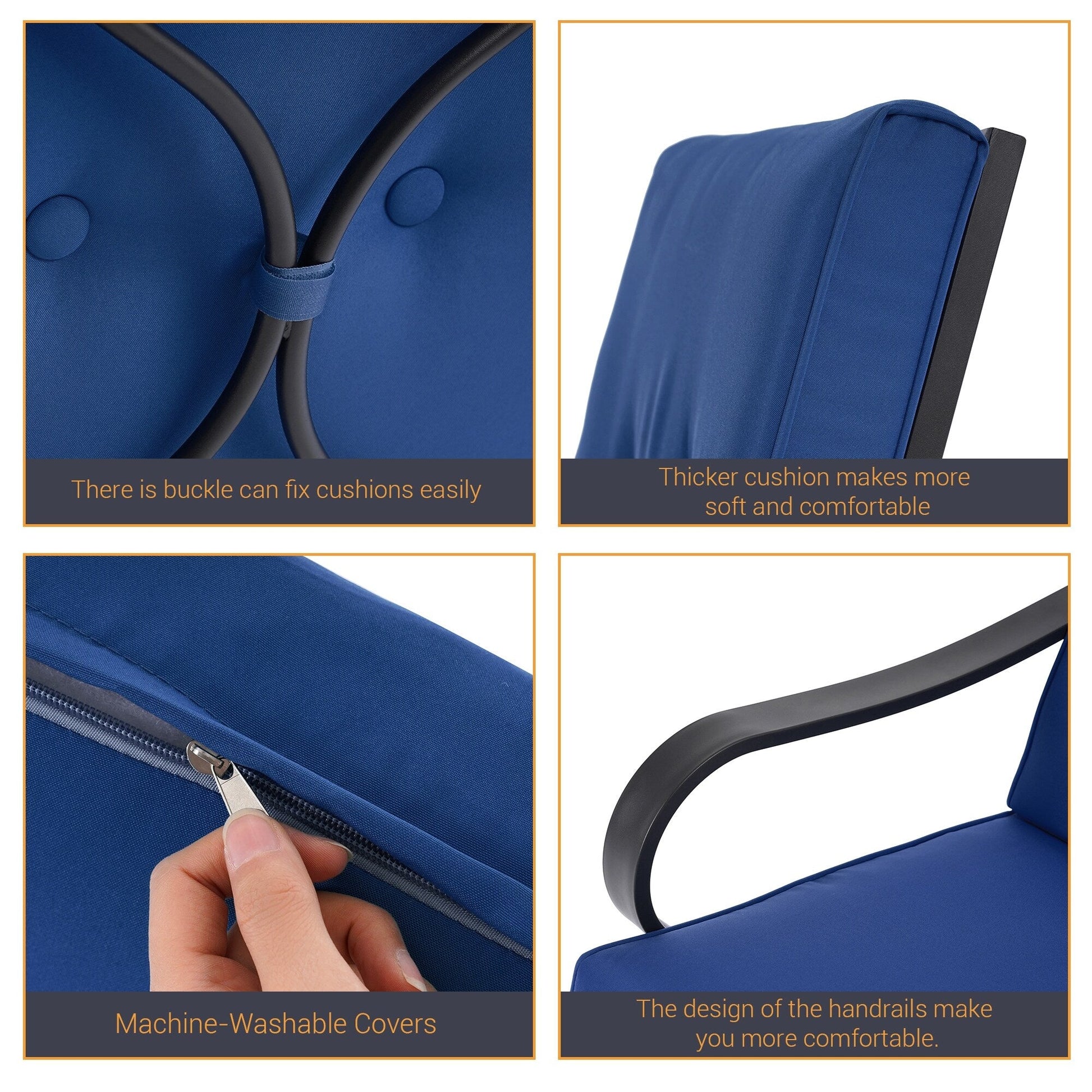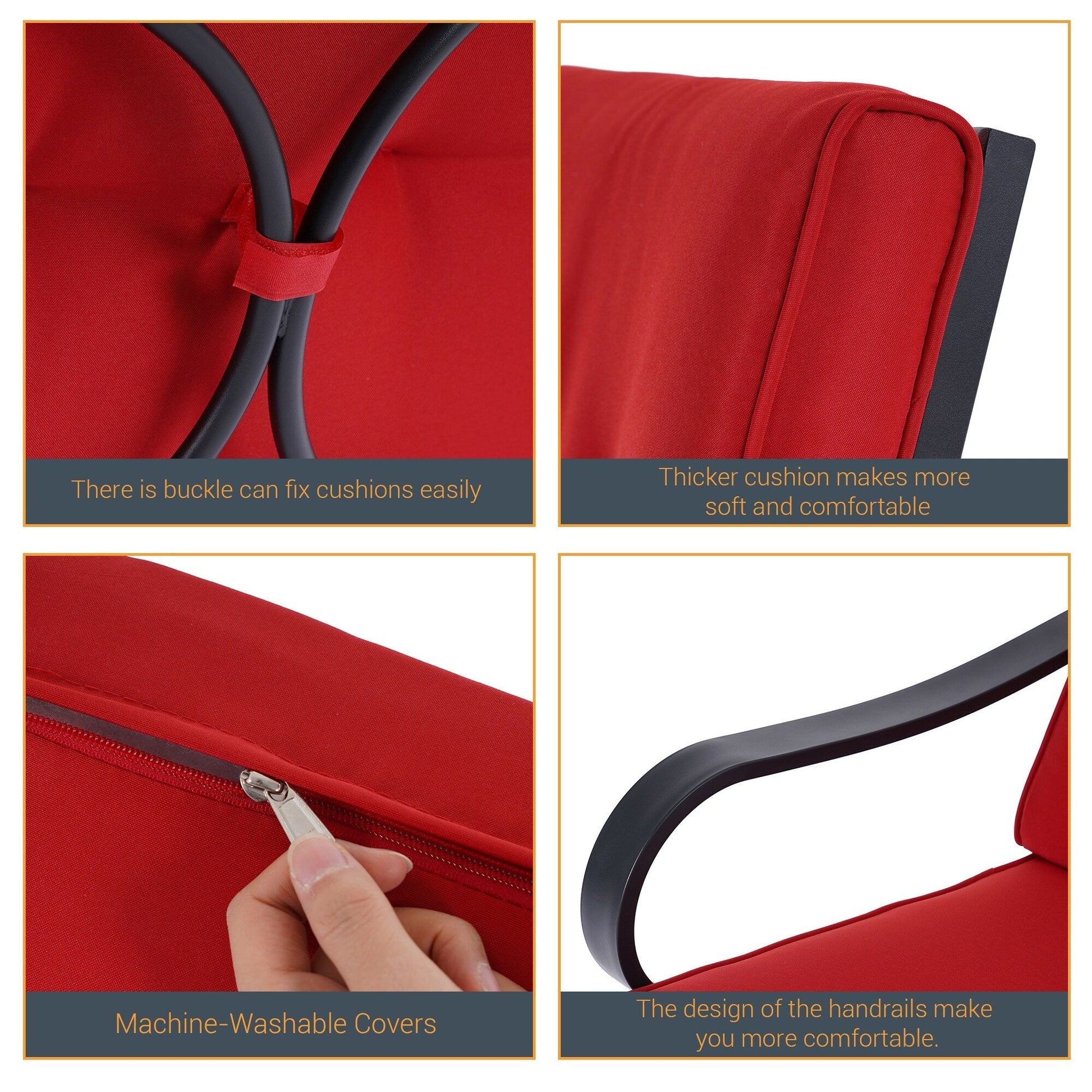 Crea un incantevole rifugio all'aperto con l'elegante set da 3 sedie a dondolo da giardino Bonosuki. Dotato di due comode sedie a dondolo con ampi cuscini per schienale e seduta e un tavolino in vetro temperato, questo set è perfetto per godersi una serata rilassante all'aperto. La struttura trapezoidale simmetrica garantisce un dondolio fluido, mentre i telai in acciaio inox verniciato a polvere con braccioli curvi ne aumentano la durata. Con diverse opzioni di colore disponibili, scegli un set che si abbini al tuo arredamento da esterno per un tocco finale perfetto.