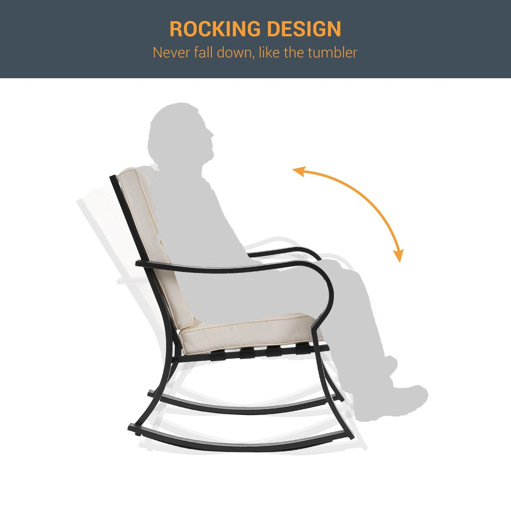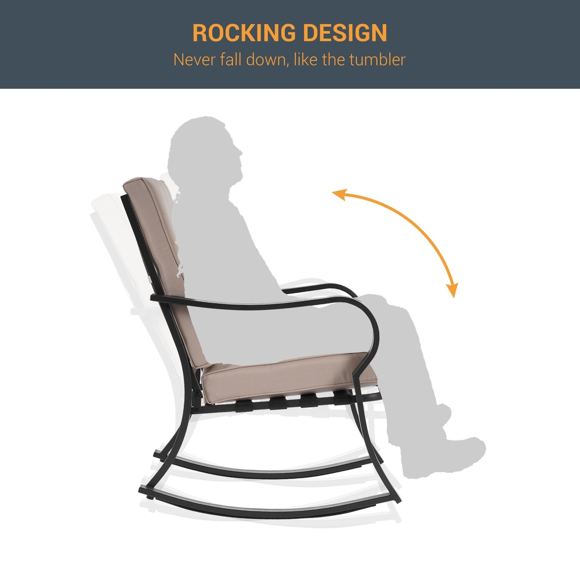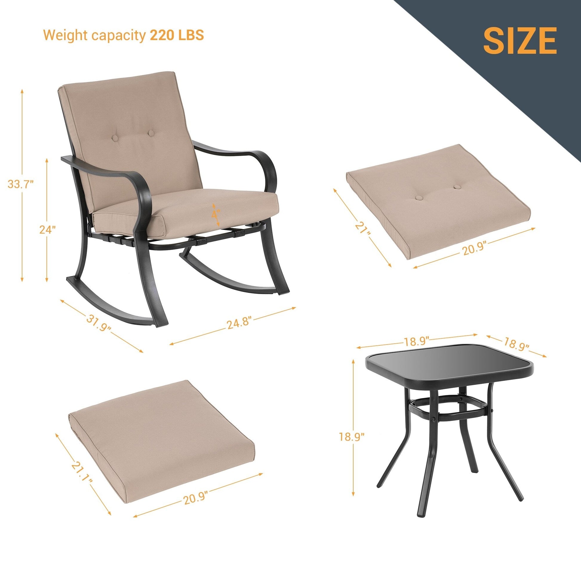 Set da bistrot per patio con sedia a dondolo da esterno Bonosuki da 3 pezzi con tavolino laterale