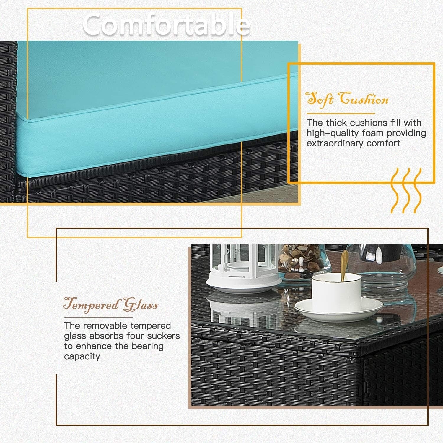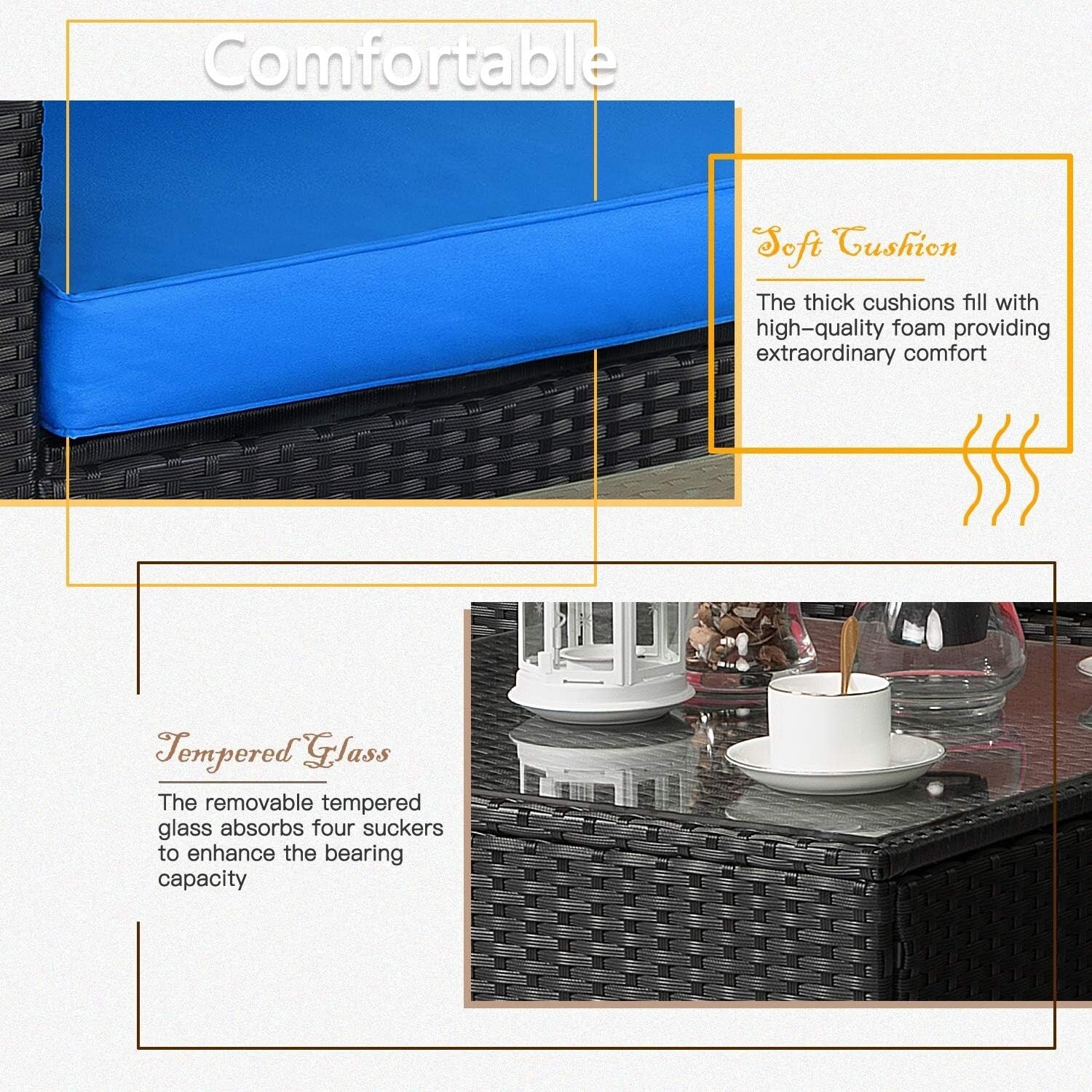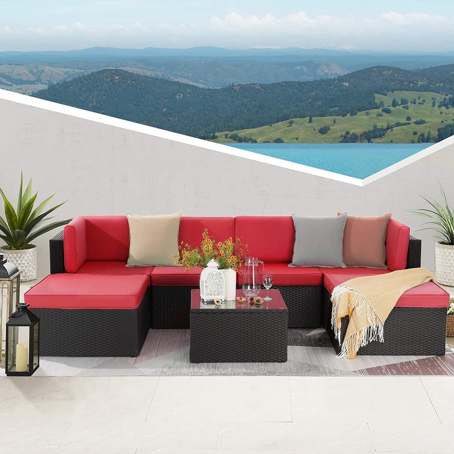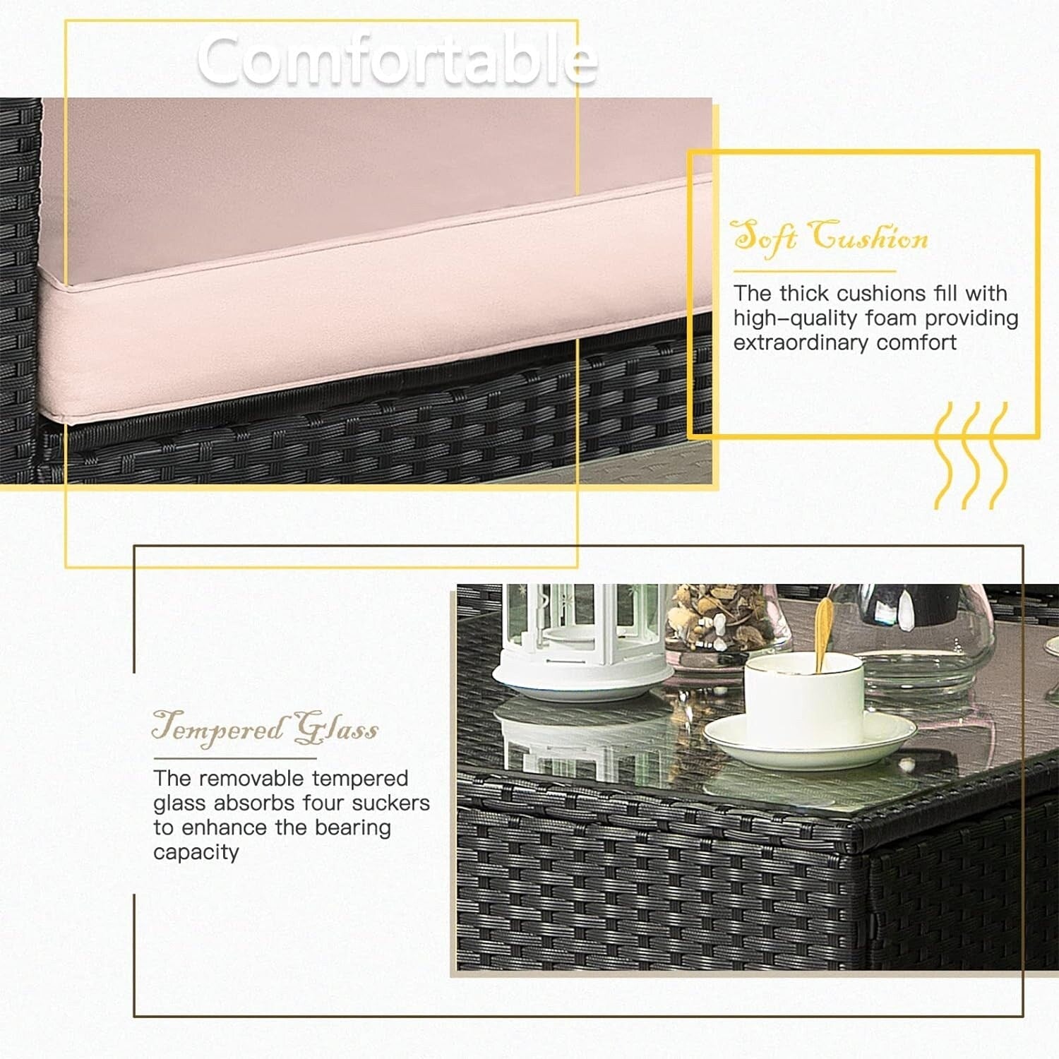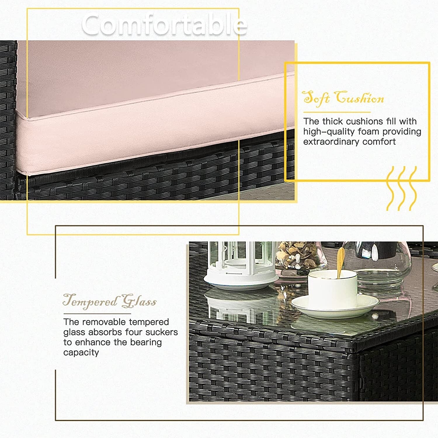 Set di mobili da giardino Bossin da 7 pezzi, divano componibile per esterni, divano in vimini rattan con cuscini lavabili e tavolo in vetro