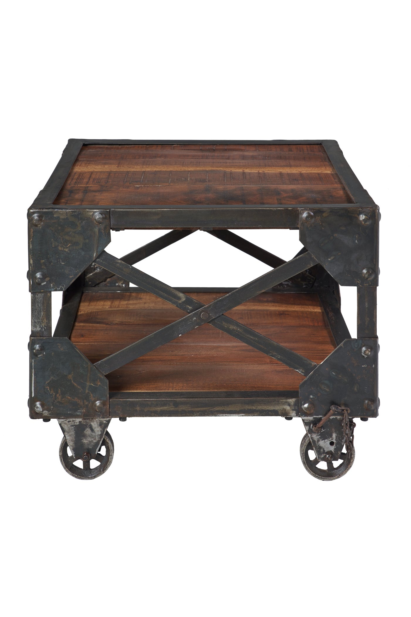 Bristol-tavolino quadrato con ruote legno di recupero e...