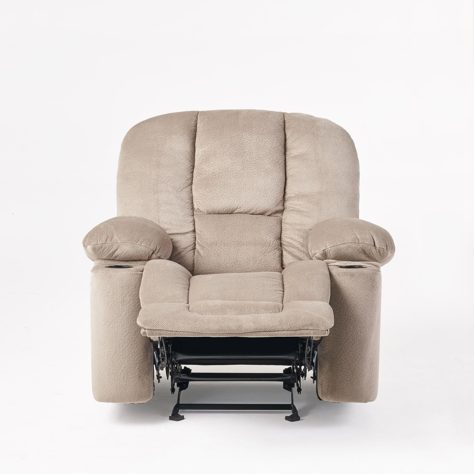 Poltrona reclinabile manuale in tessuto elegante marrone con doppio portabicchieri, dimensioni spaziose per il massimo comfort