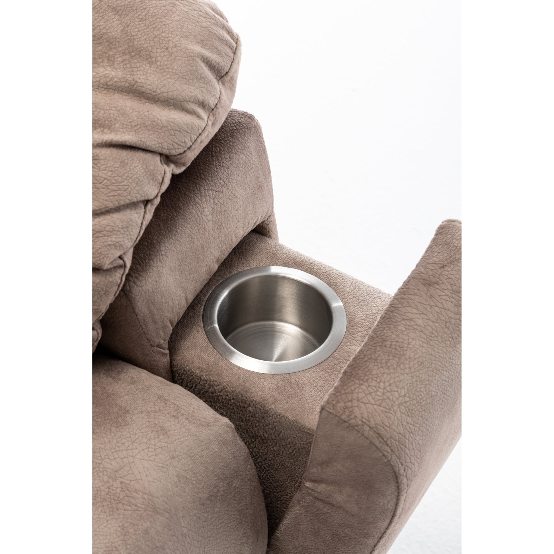 Poltrona reclinabile elettrica marrone con massaggio, riscaldamento lombare, motore tedesco silenzioso, tessuto in piuma d'oca e portabicchieri