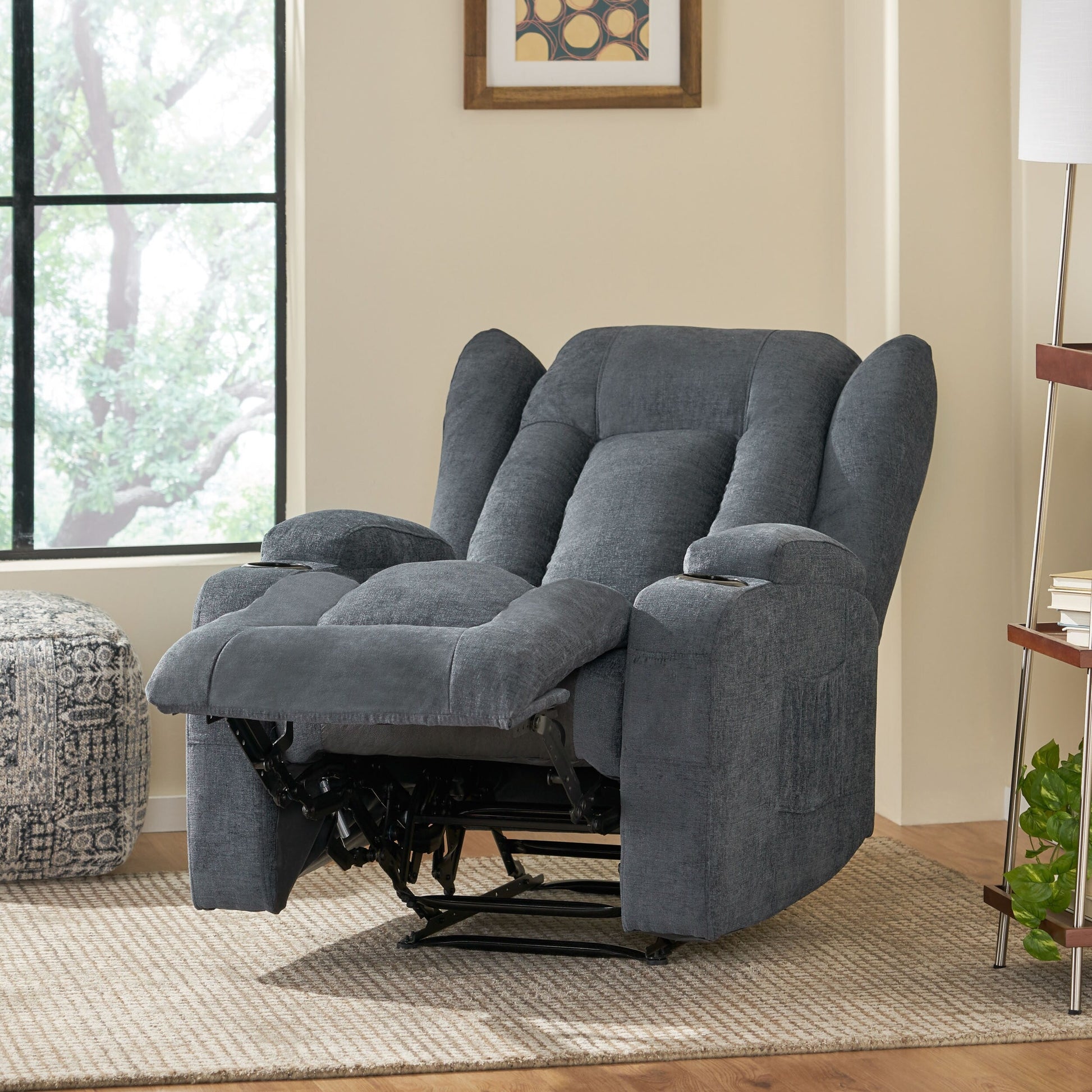 • FUNZIONE RECLINABILE: Questa poltrona reclinabile manuale utilizza una comoda leva ad anello per posizionare la poltrona in posizione reclinata. Per riportare la poltrona in posizione verticale, è sufficiente inclinare il peso del corpo in avanti e verso l'alto e spingere il poggiapiedi verso il basso.