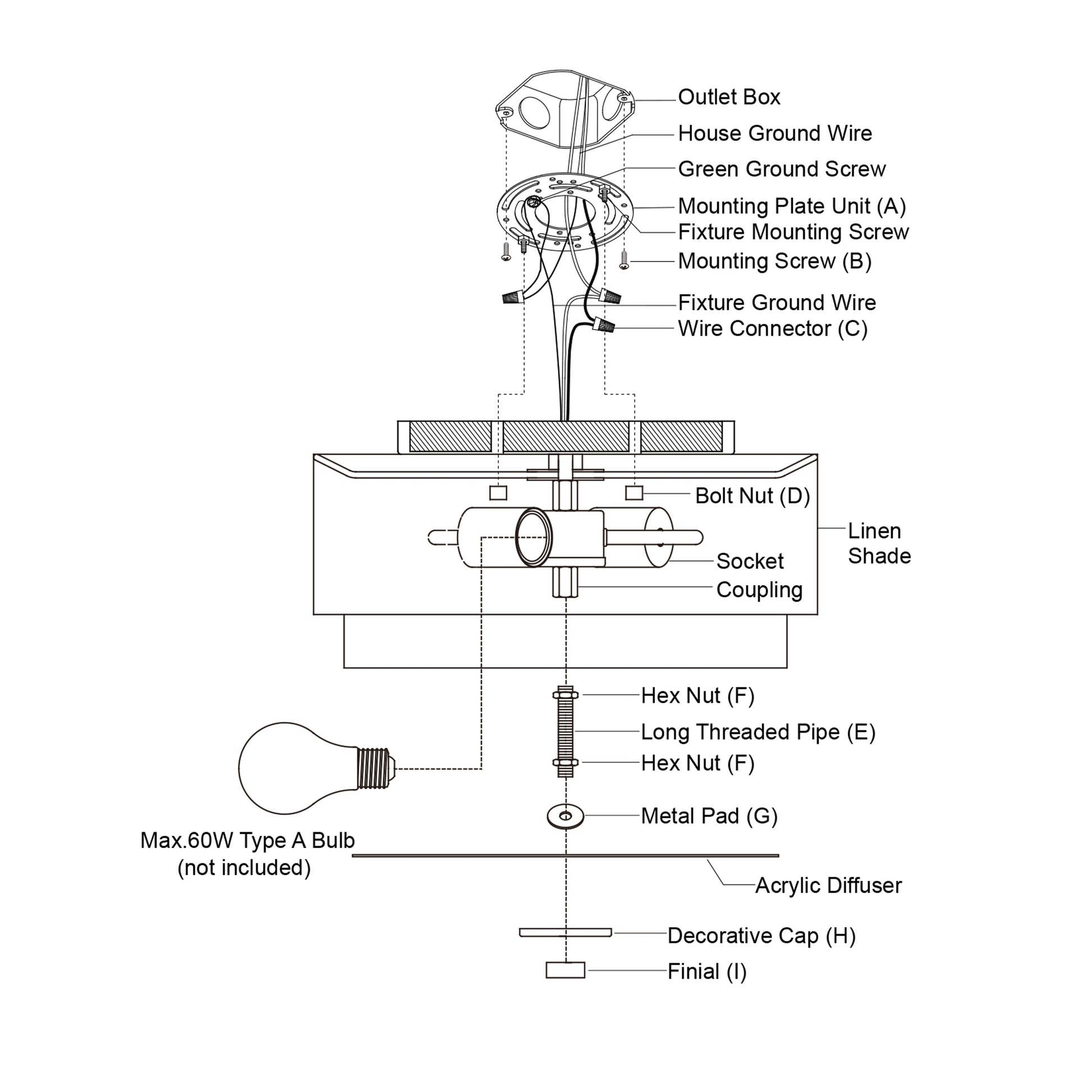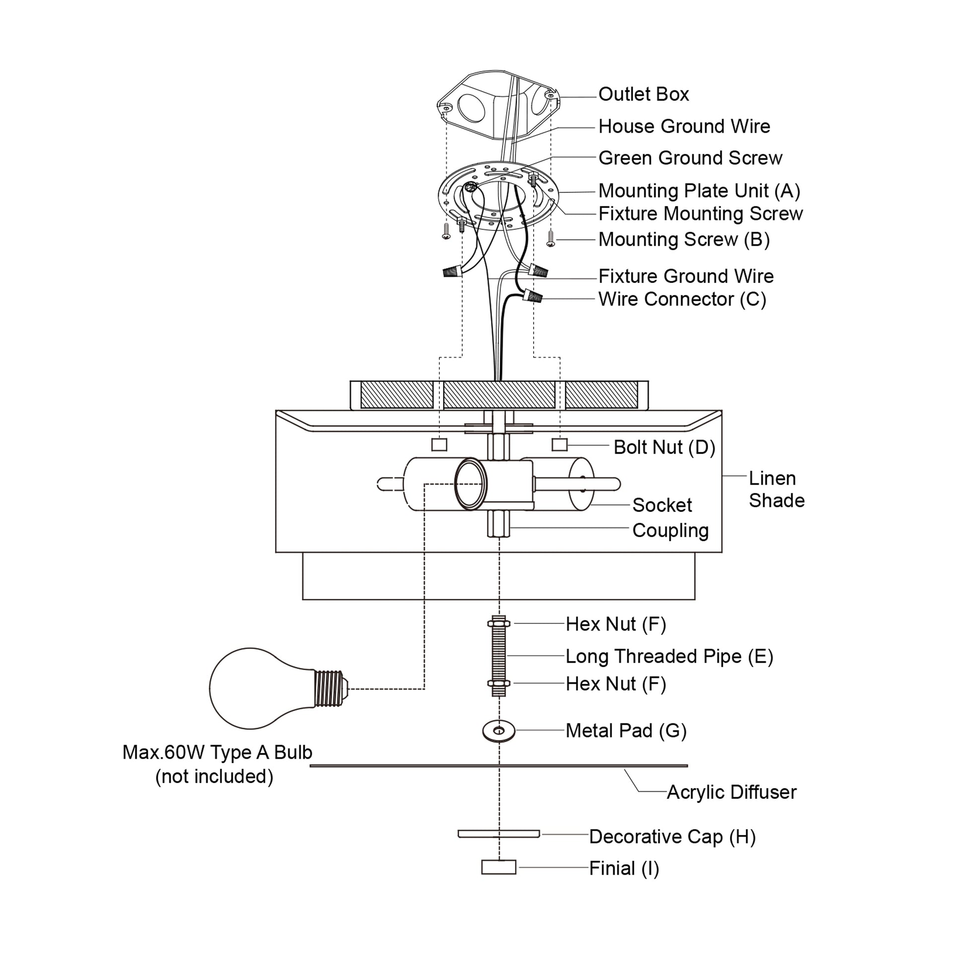 Lampada da soffitto Burnaby Mid-Century Modern con paralume...