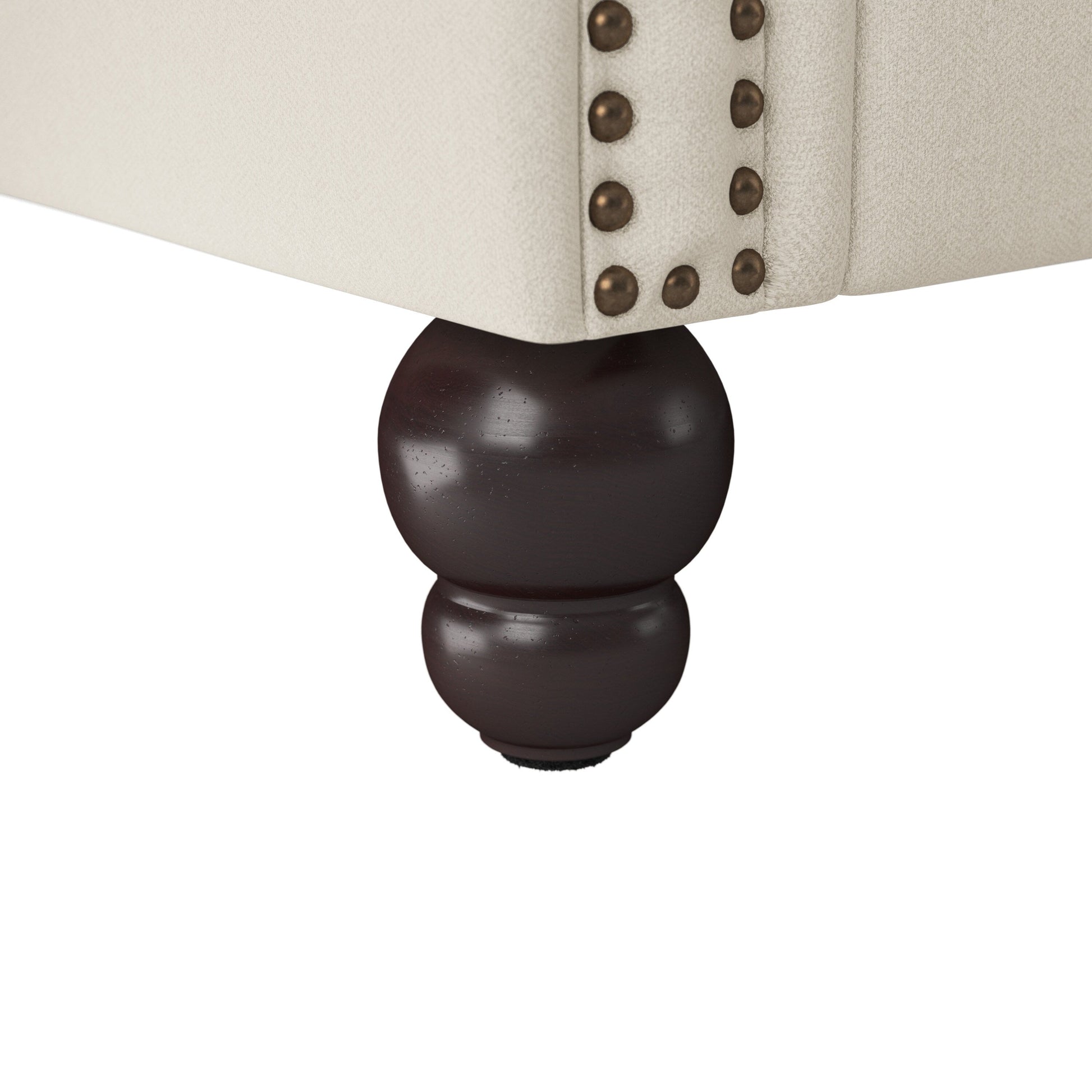 Il divano Coventry 85W di Bush Furniture rappresenta una pratica soluzione per il soggiorno, con una qualità e una durata straordinarie, in linea con il suo stile classico. Comodamente confezionato per un facile spostamento in qualsiasi stanza o corridoio stretto, questo divano lungo pronto da montare con cuscini coordinati è un'ottima soluzione per arredare un piccolo appartamento, una casa grande e qualsiasi altro spazio intermedio. Goditi la compagnia di amici e familiari o prenditi un momento per rilassarti da solo su un ampio divano con imbottitura in schiuma ad alta densità e molle insacchettate che mantengono la loro forma e sensazione per anni di comfort. I cuscini di seduta e schienale reversibili sono realizzati in tessuto StainGard™, adatto a bambini e animali domestici, che respinge sporco, olio, acqua e altri liquidi per prevenire antiestetiche imperfezioni. La robusta struttura in metallo e legno include un design a molle sinuoso e silenzioso con supporti trasversali che non si piegano né si spostano nel tempo. I piedini arrotondati color espresso, i braccioli arrotondati e le finiture con borchie riflettono uno stile sofisticato che si abbina perfettamente all'arredamento francese country, rustico, costiero e tradizionale. Questo divano da soggiorno è stato rigorosamente testato per garantire sicurezza, durata e resistenza alle macchie ed è coperto dalla garanzia del produttore Bush Furniture di 1 anno. Completa il tuo soggiorno con una gamma di divani, divani componibili, pouf e poltrone Coventry coordinati (venduti separatamente).