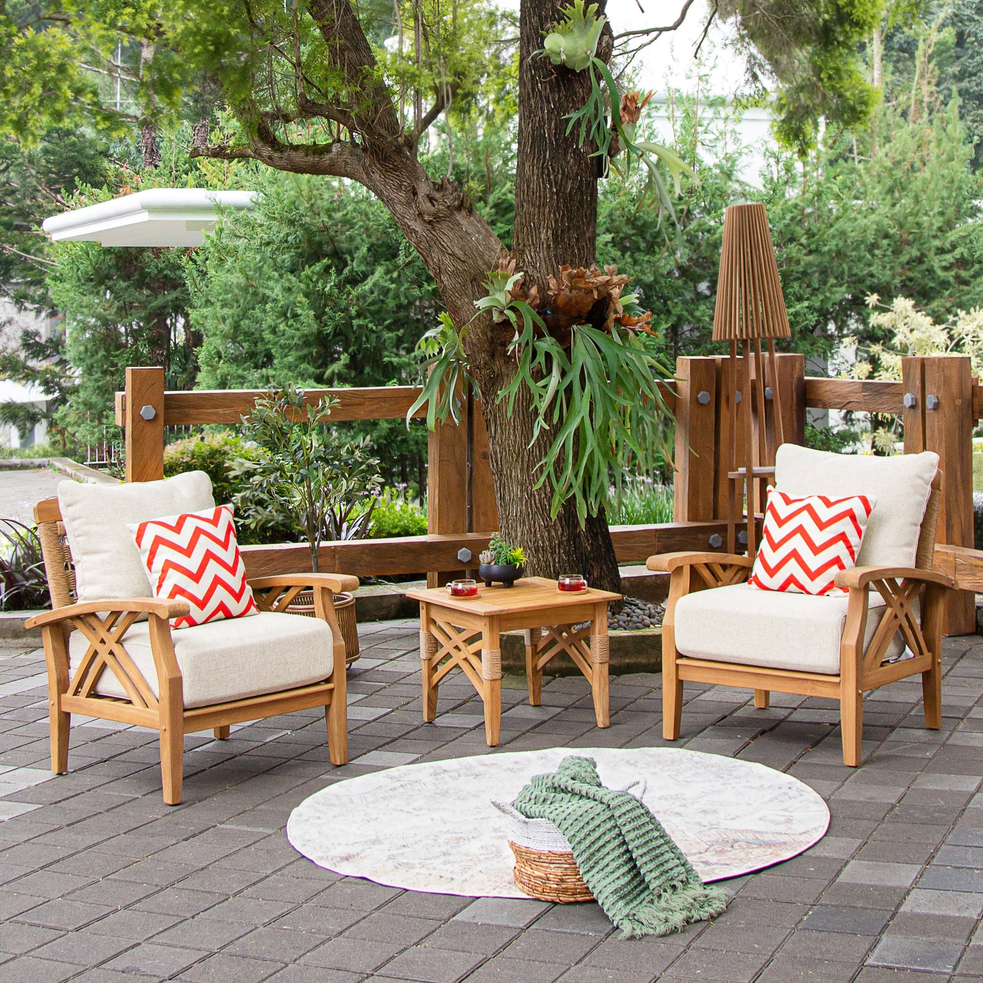 • Cuscini per lo schienale inclusi per un comfort maggiore nel tuo set da conversazione in teak