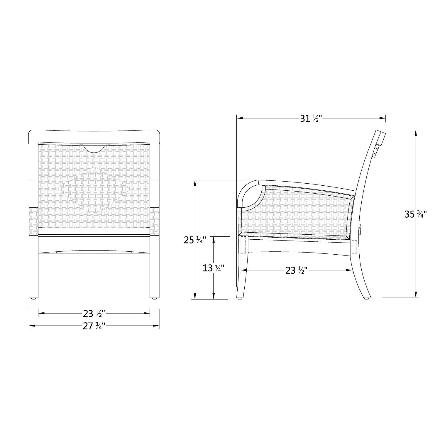 • Dimensioni della seduta della sedia senza cuscino: 23,5 pollici di larghezza x 23,5 pollici di profondità x 13,25 pollici di altezza