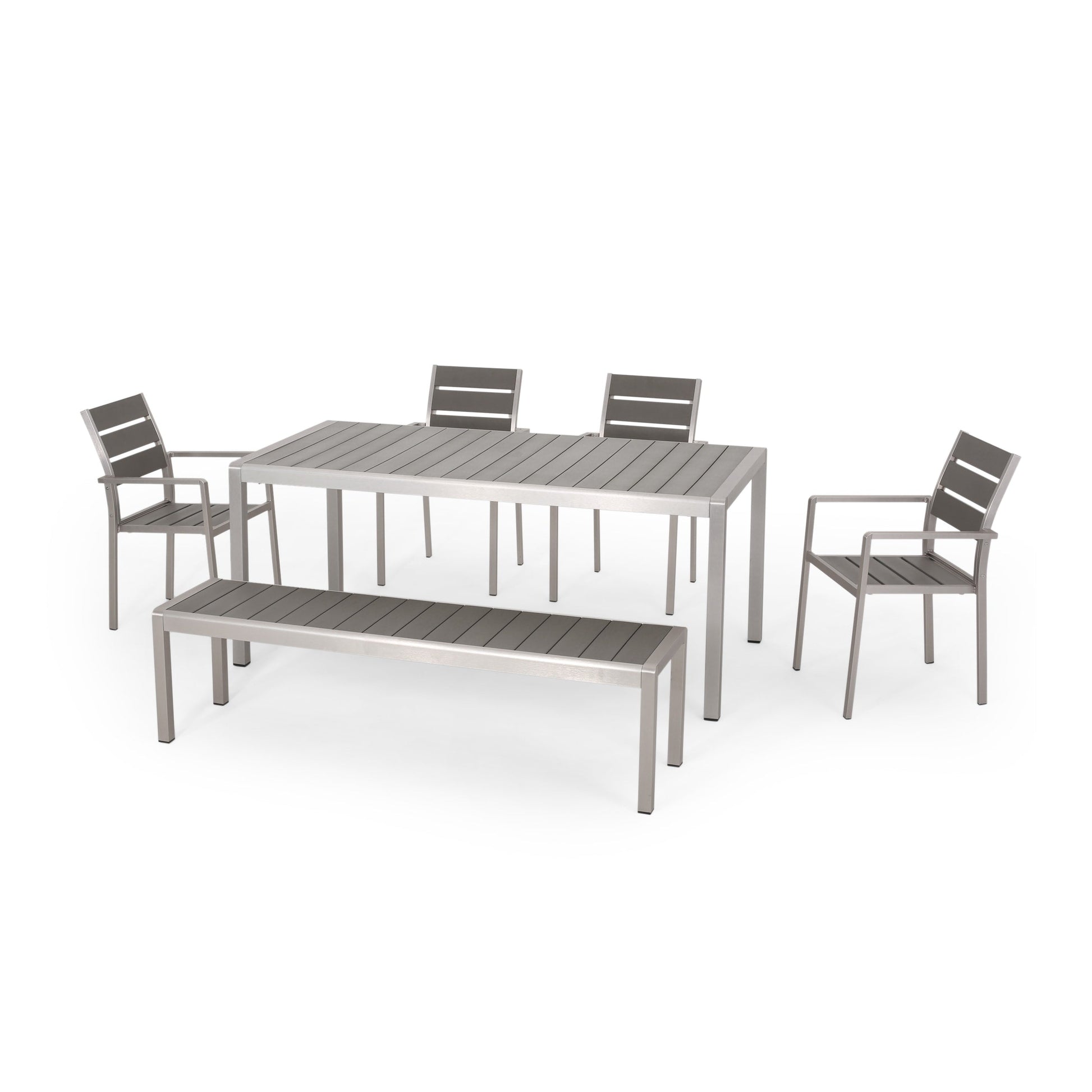 Set da pranzo moderno in alluminio da 6 posti con panca da pranzo Cape Coral Outdoor di Christopher Knight Home